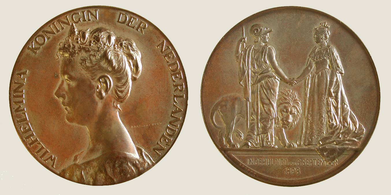 Penning t.g.v. inhuldiging koningin Wilhelmina op 6 ...