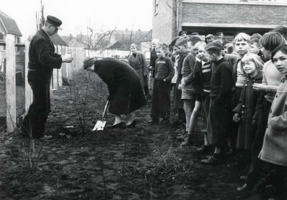 Eerstesteenlegging van de verbouwing van het gemeent...