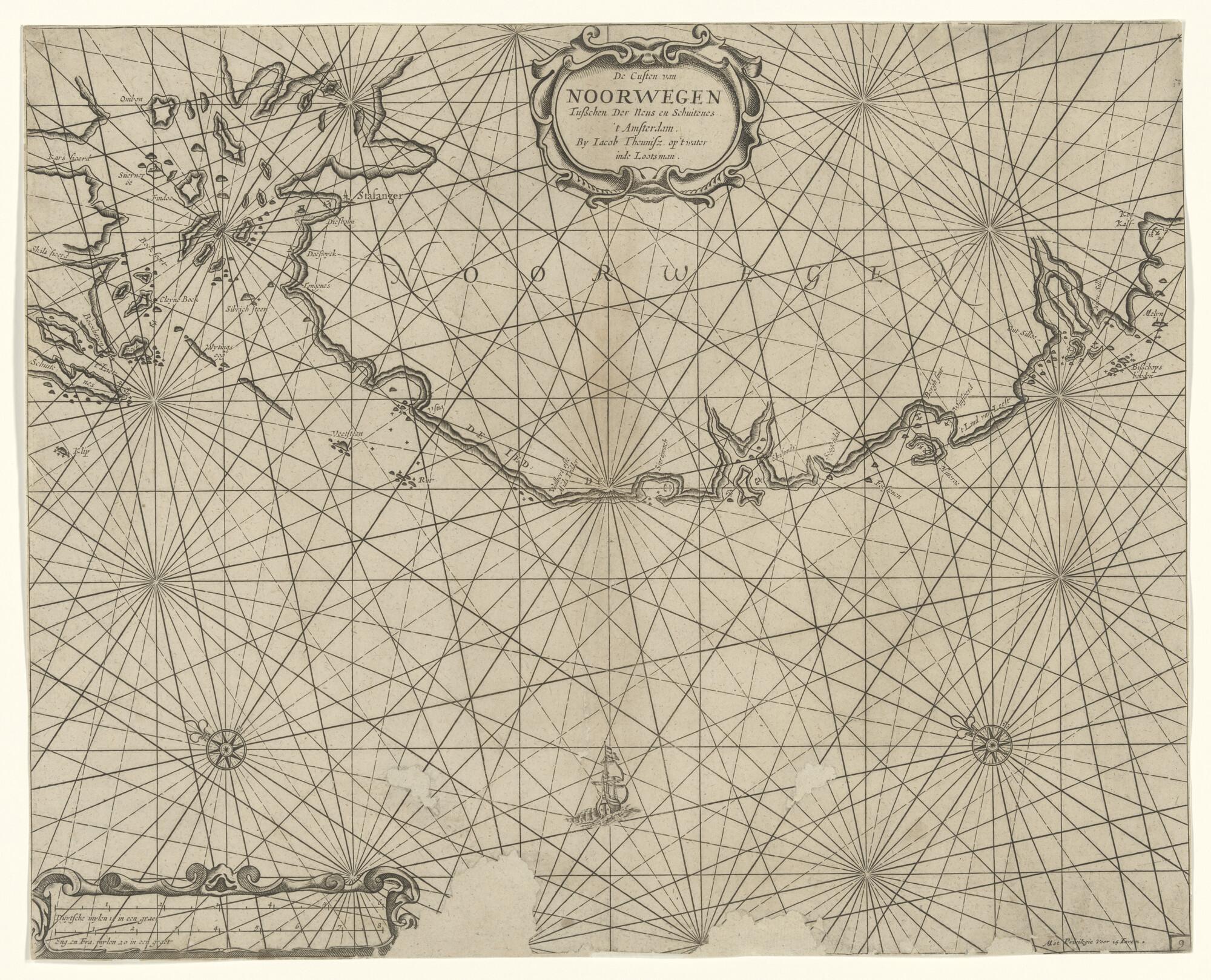 Zeekaart van de kust van Noorwegen tussen De Neus en...