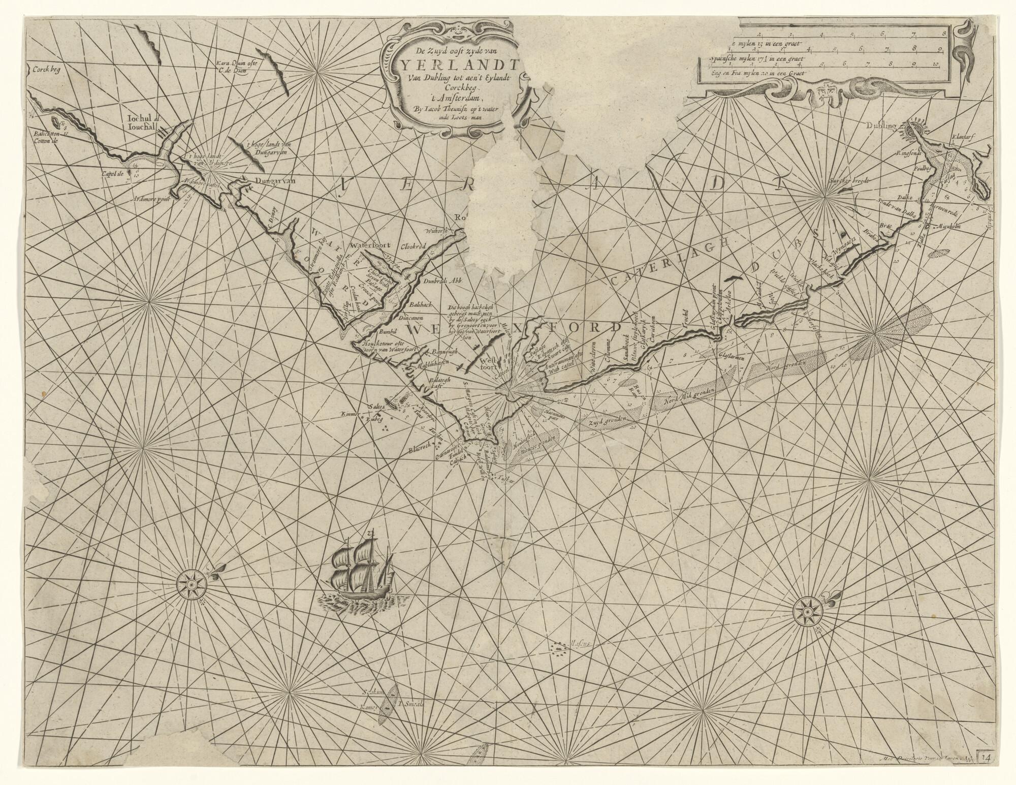Zeekaart van een deel van de zuidoostkust van Ierlan...