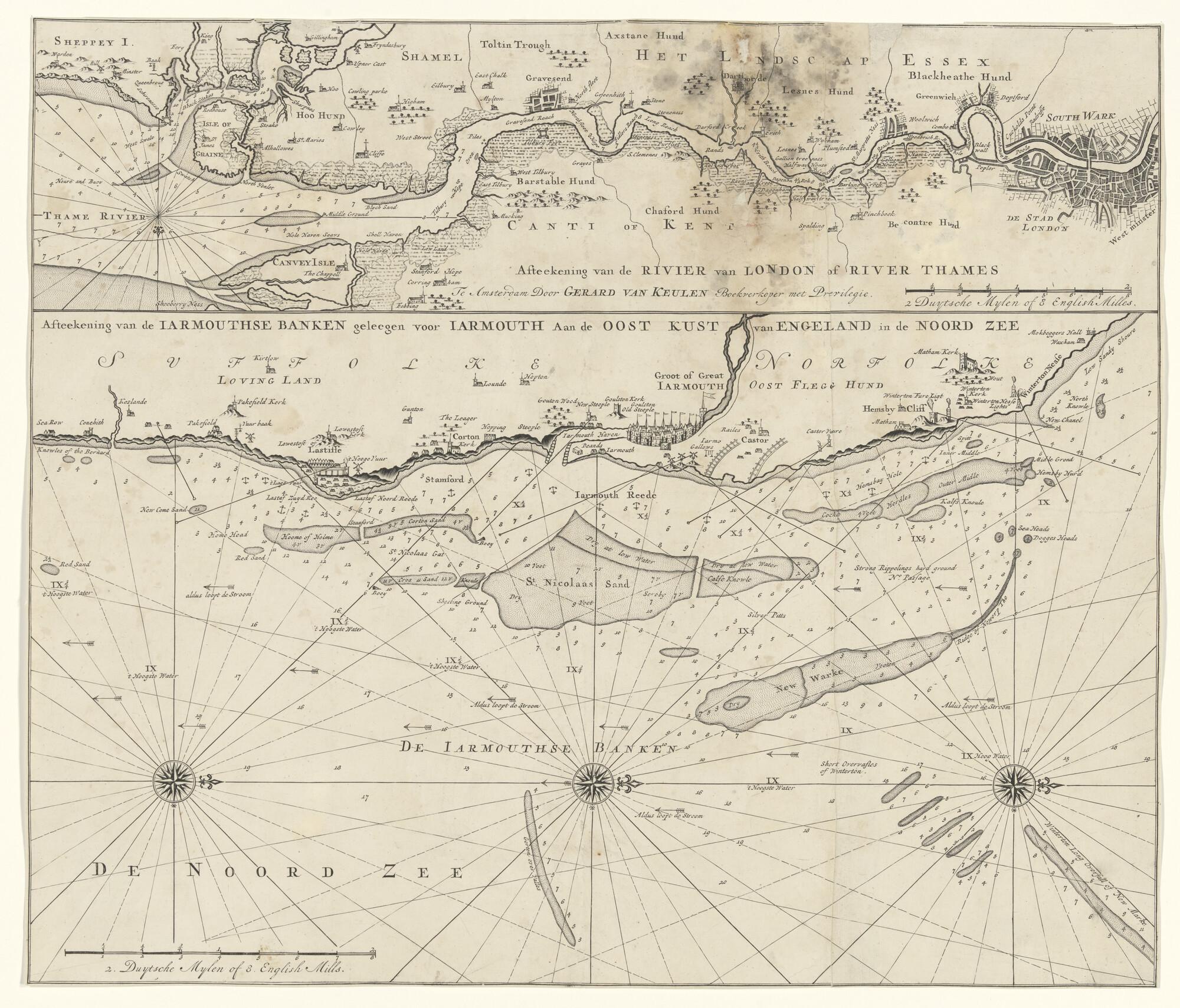 Zeekaart van een deel van de oostkust van Engeland, ...