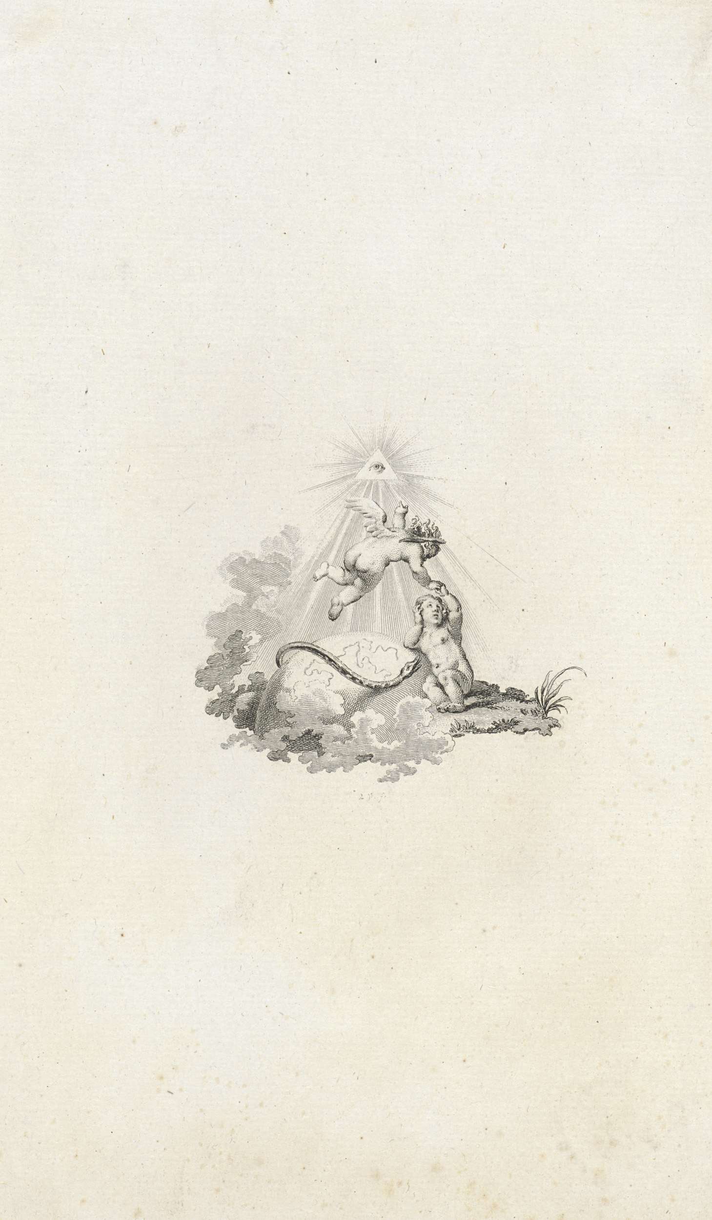 Vignet met twee putti, een slang, het alziend oog en...