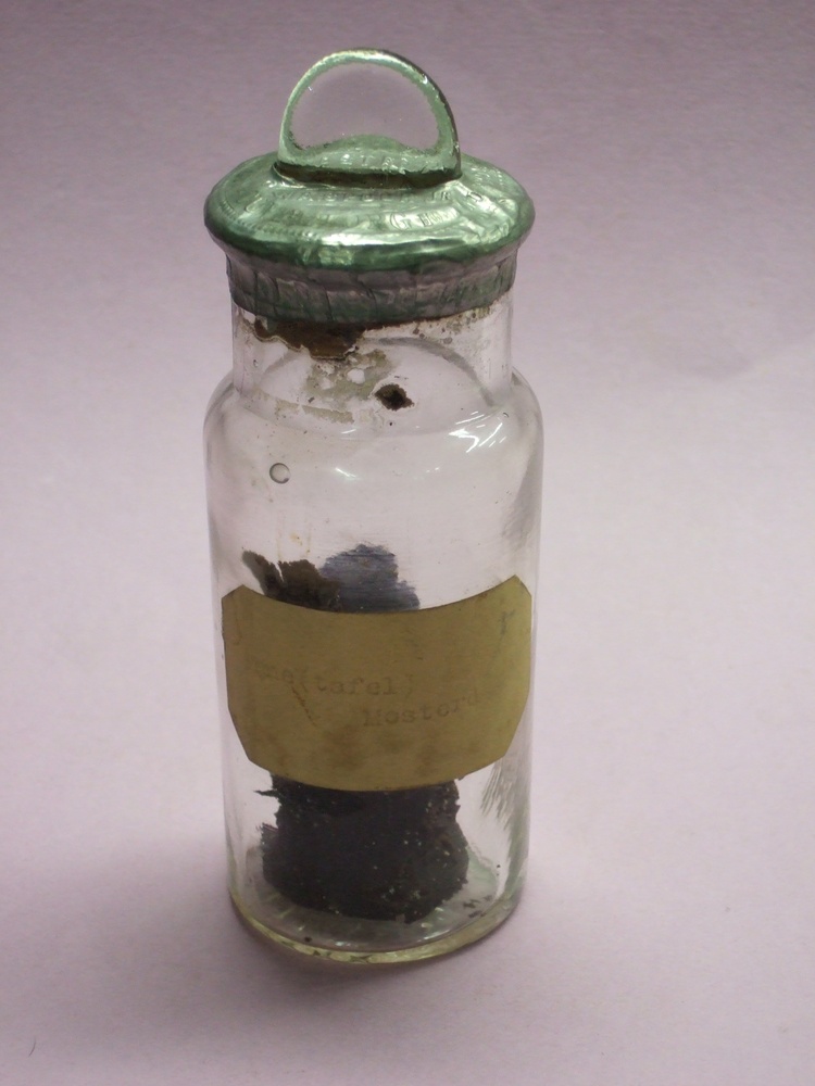 stopflesje met mosterd, geassocieerd met Spoor's mos...
