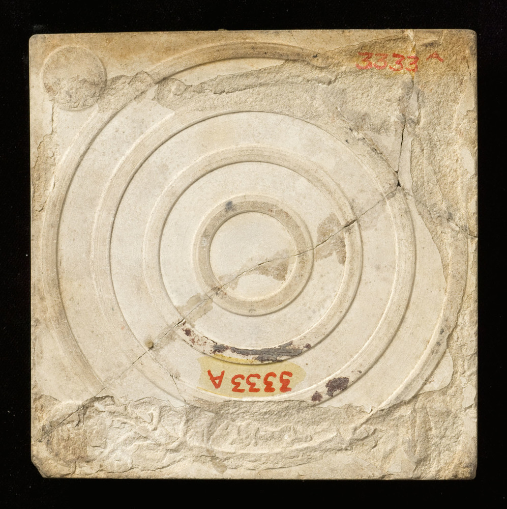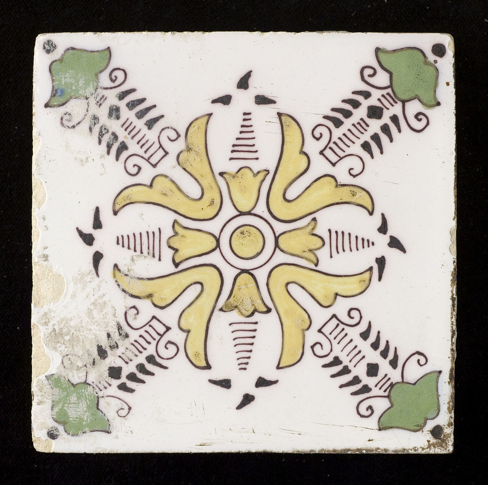 Tegel van keramiek, gesjabloneerd, voorstellende een...