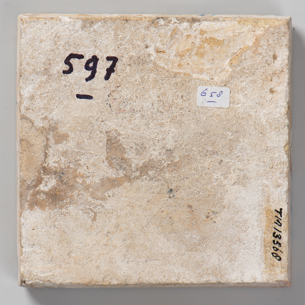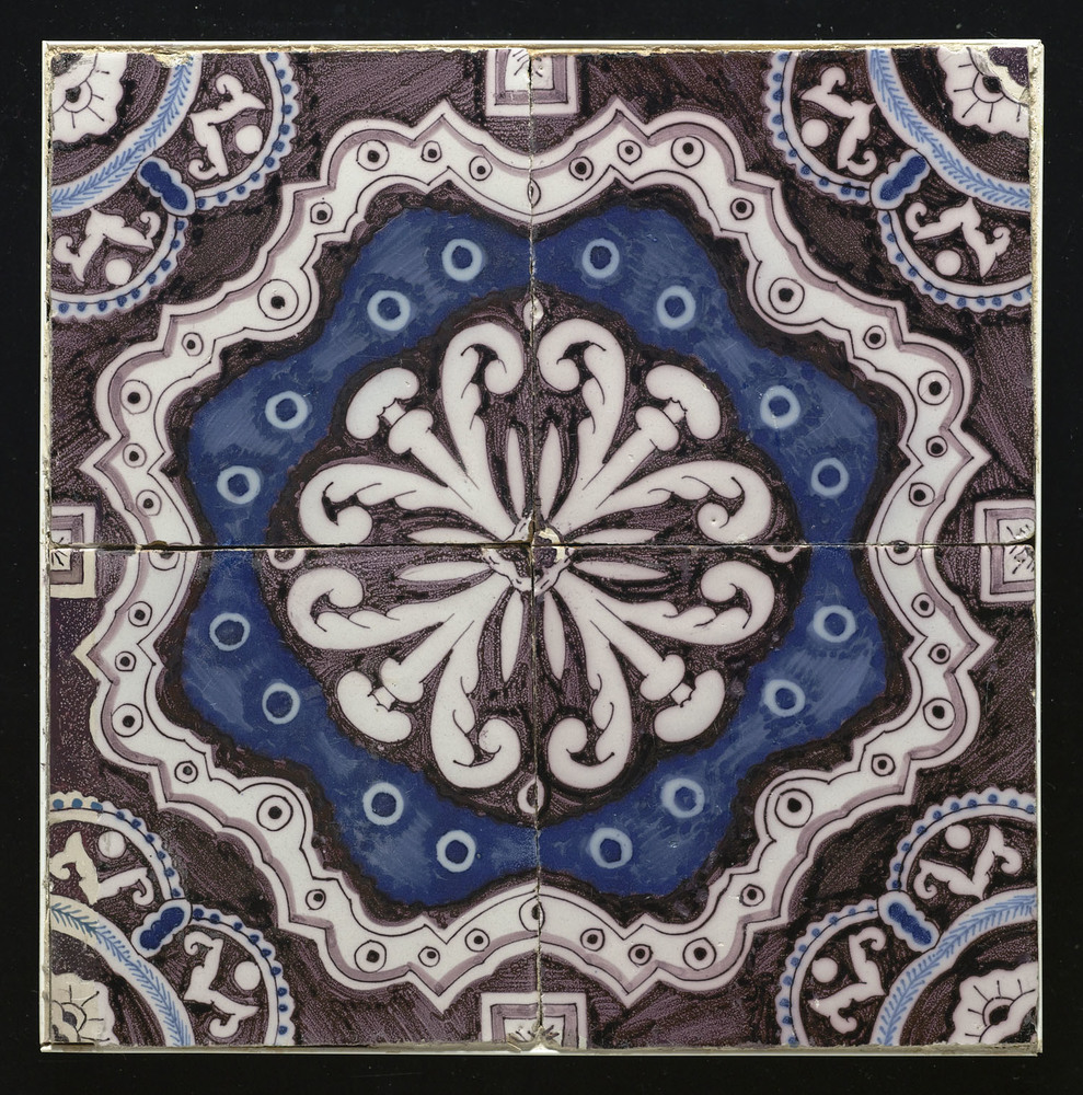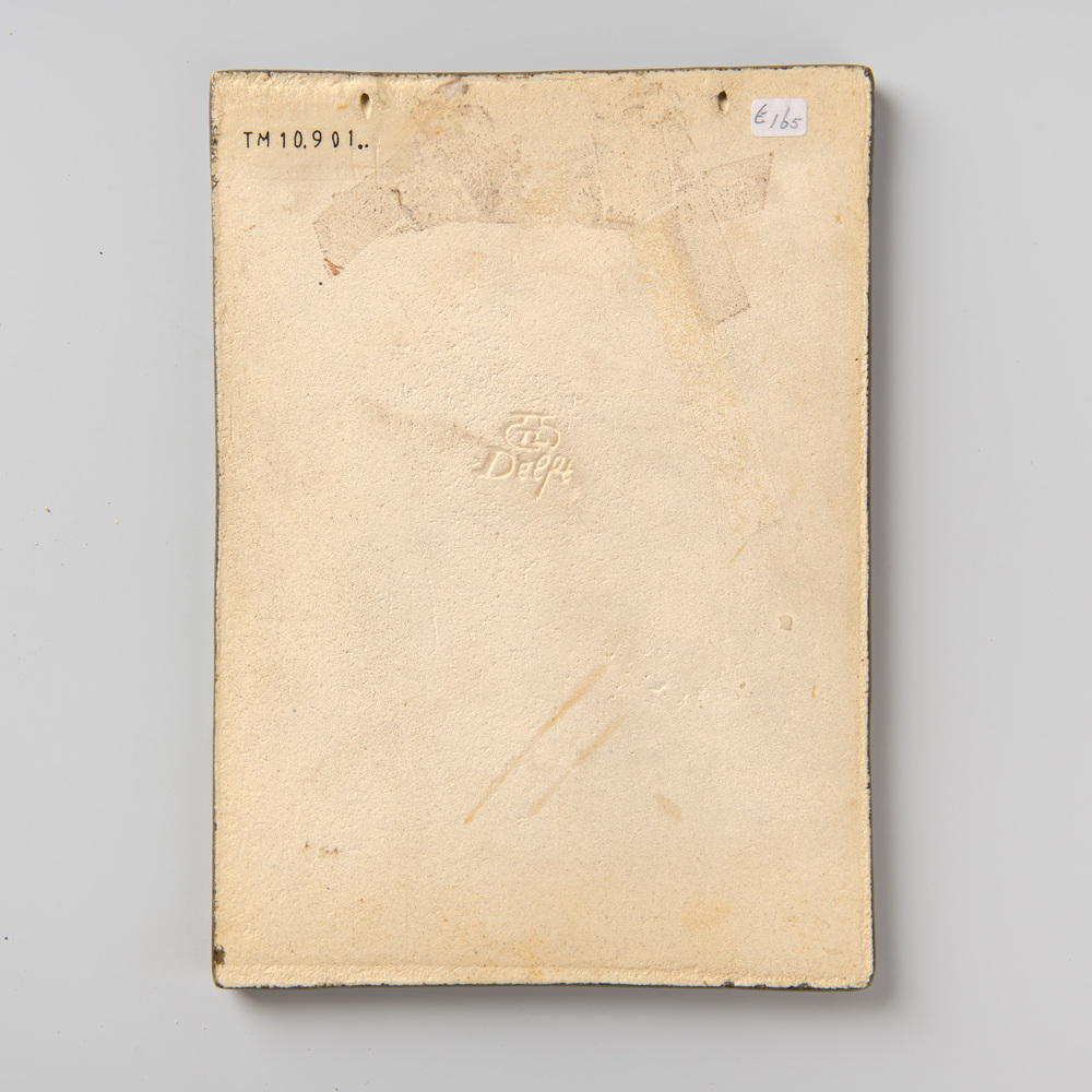 tegel van keramiek met tinglazuur, voorstellende: ce...