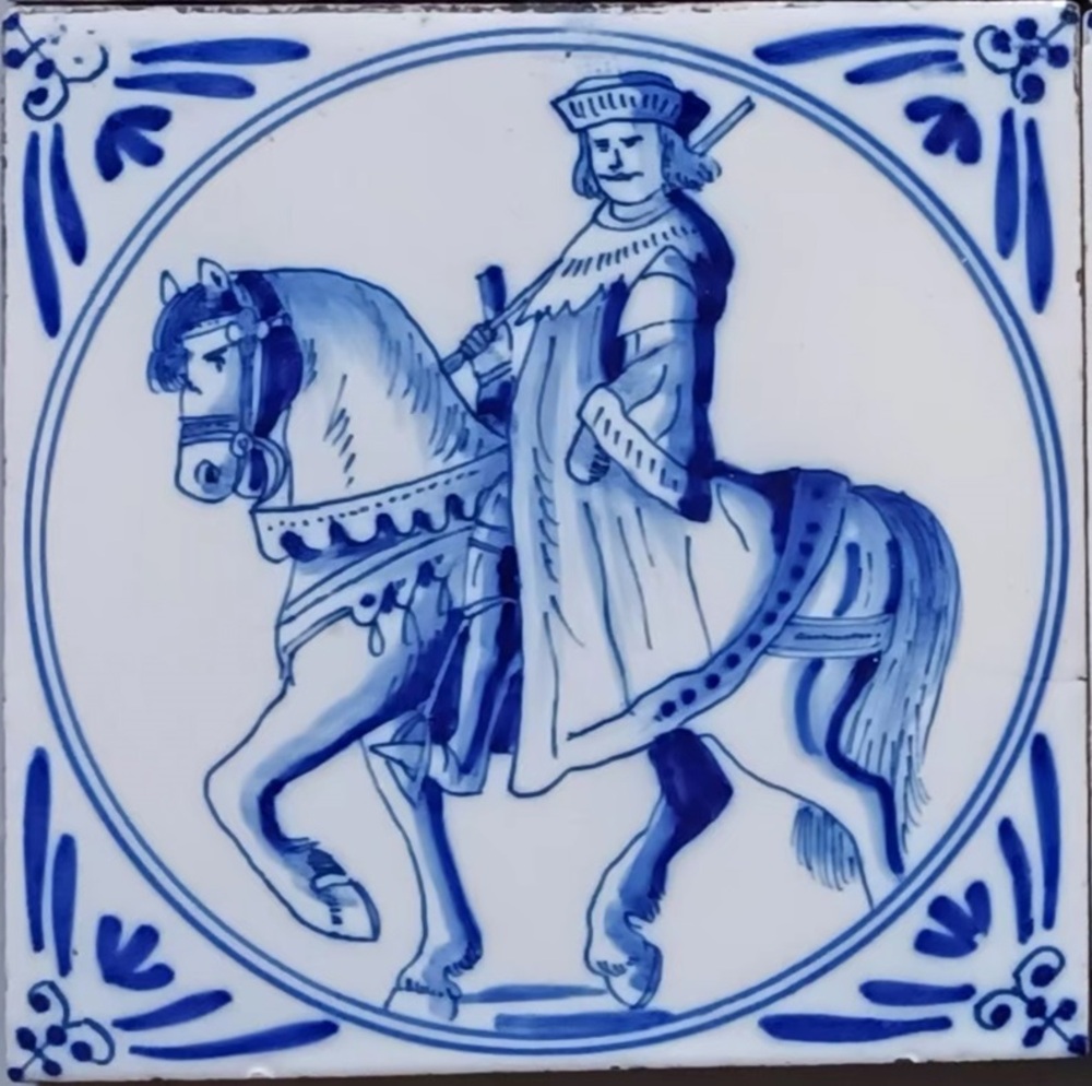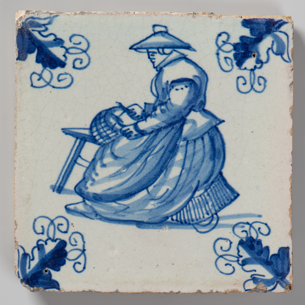 tegel van aardewerk met tinglazuur, voorstellende: v...