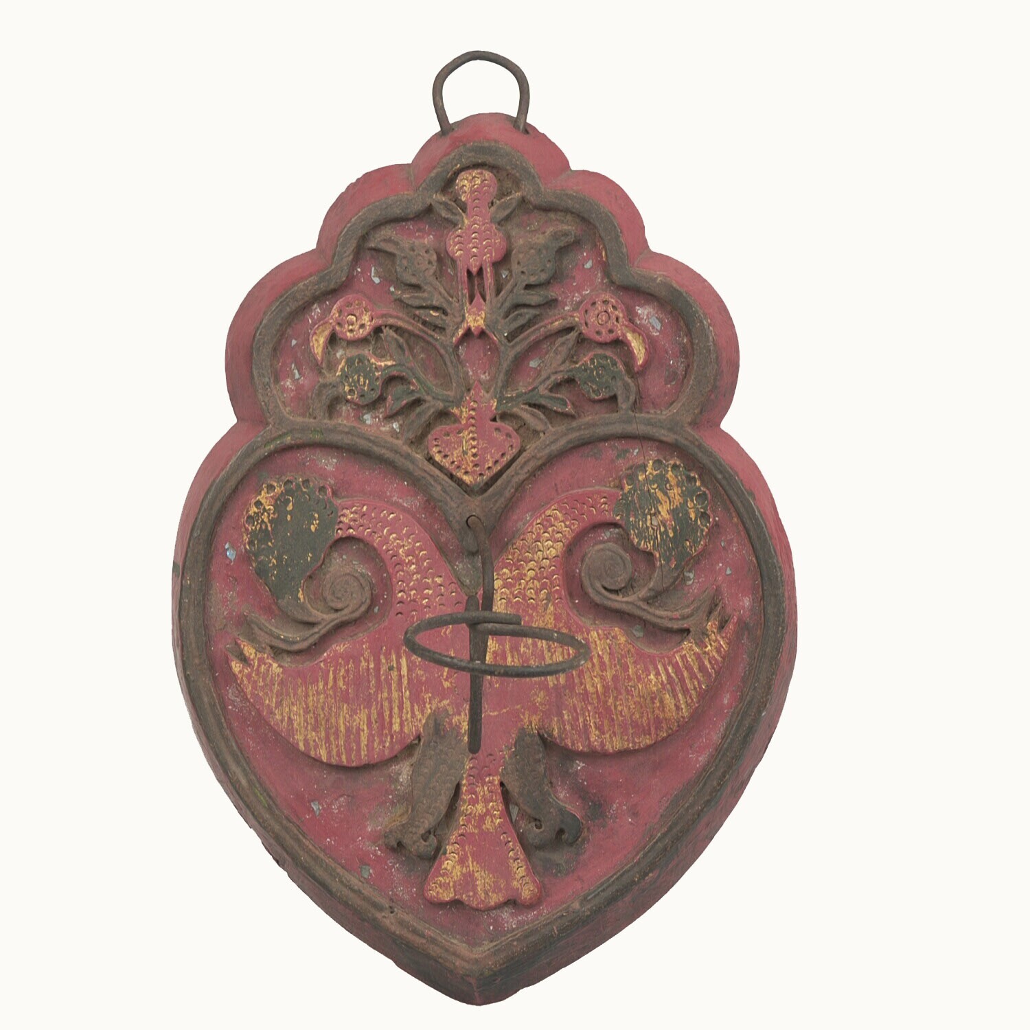 Houten leeuwenkop met vergulde tanden