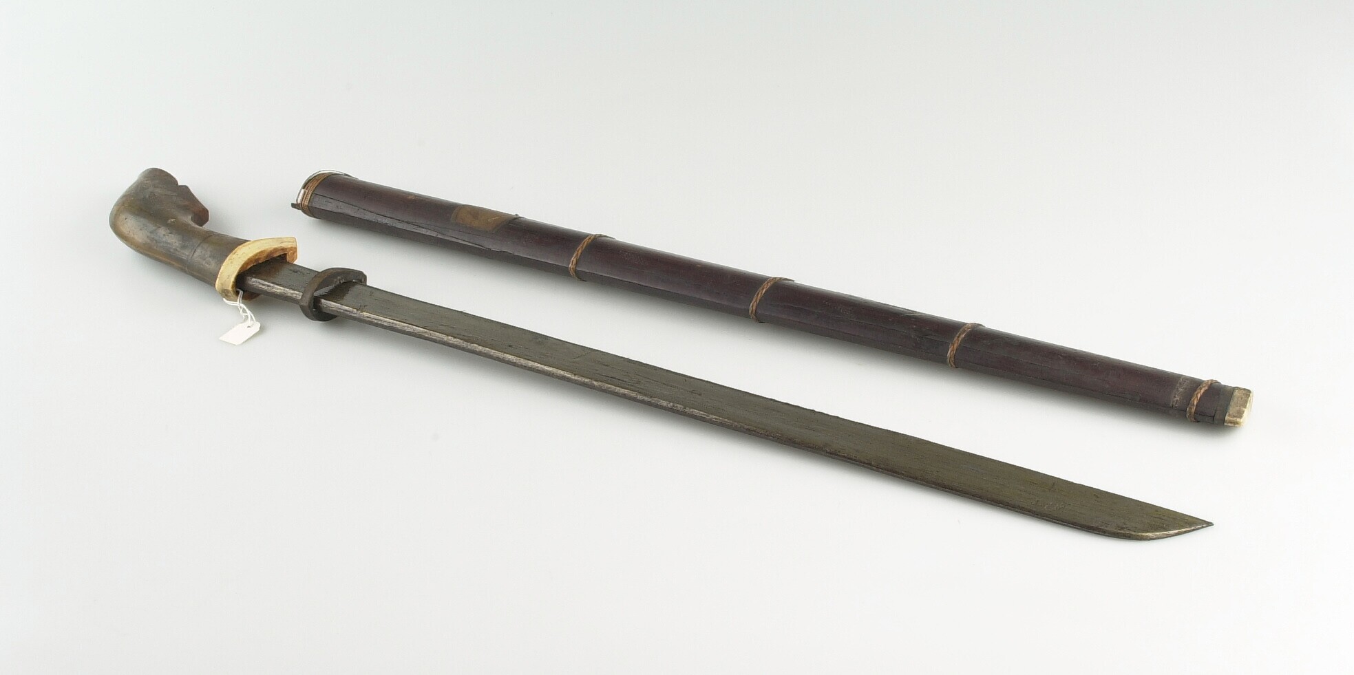 Metalen zwaard met hoornen greep en houten schede