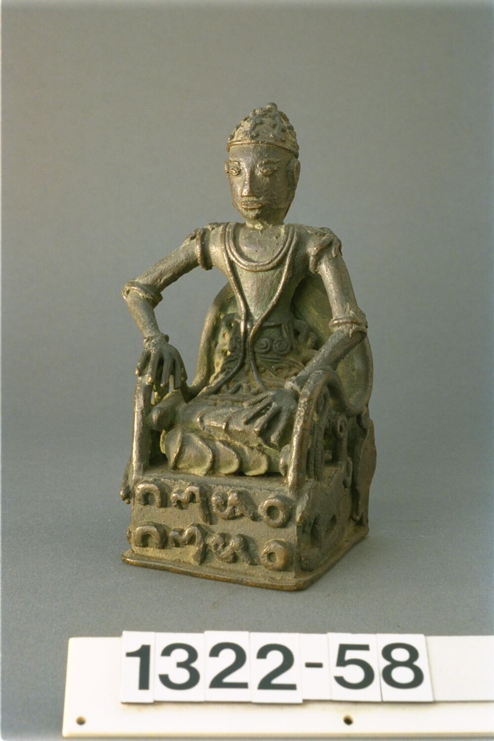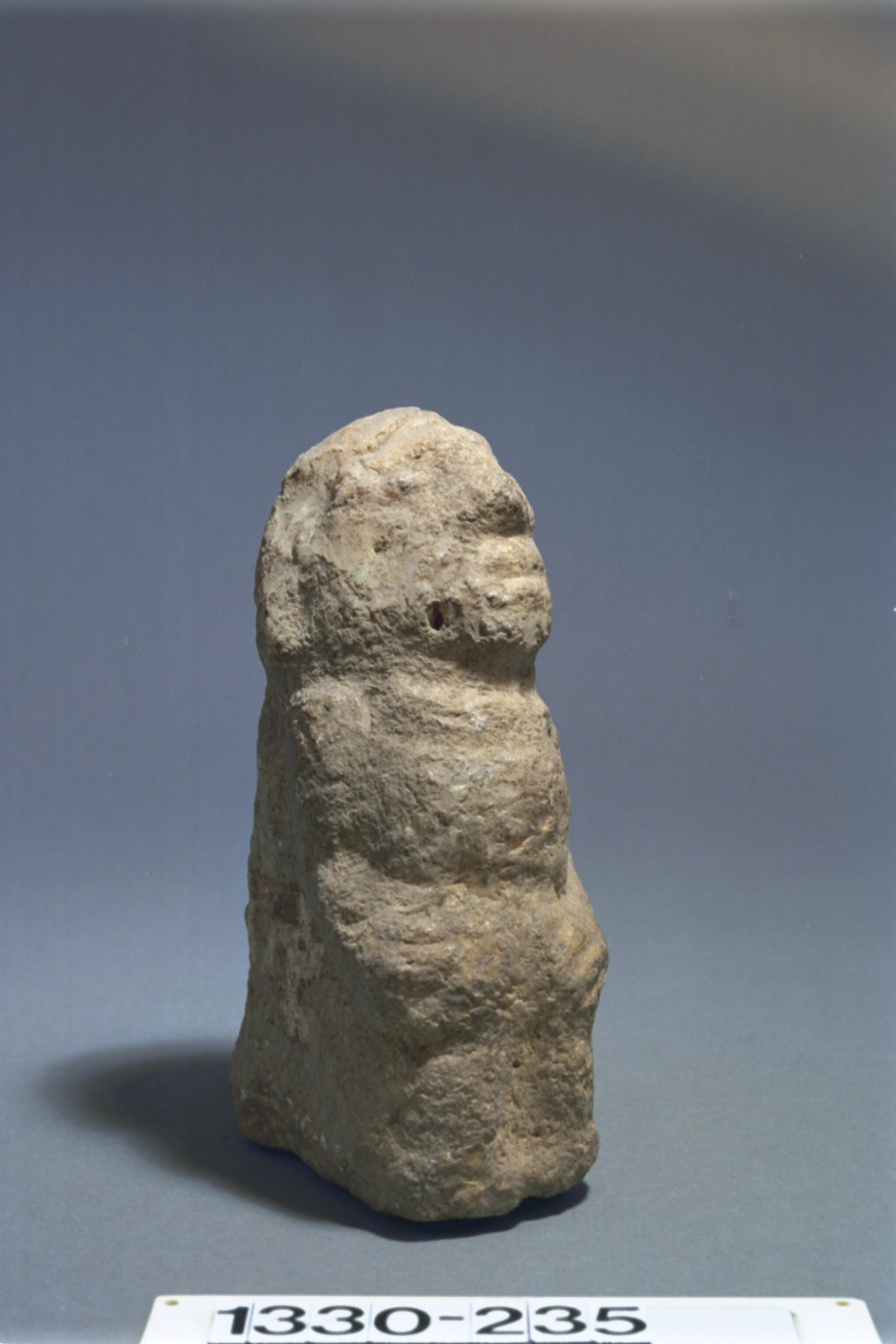 Stenen beeld van een zittende figuur