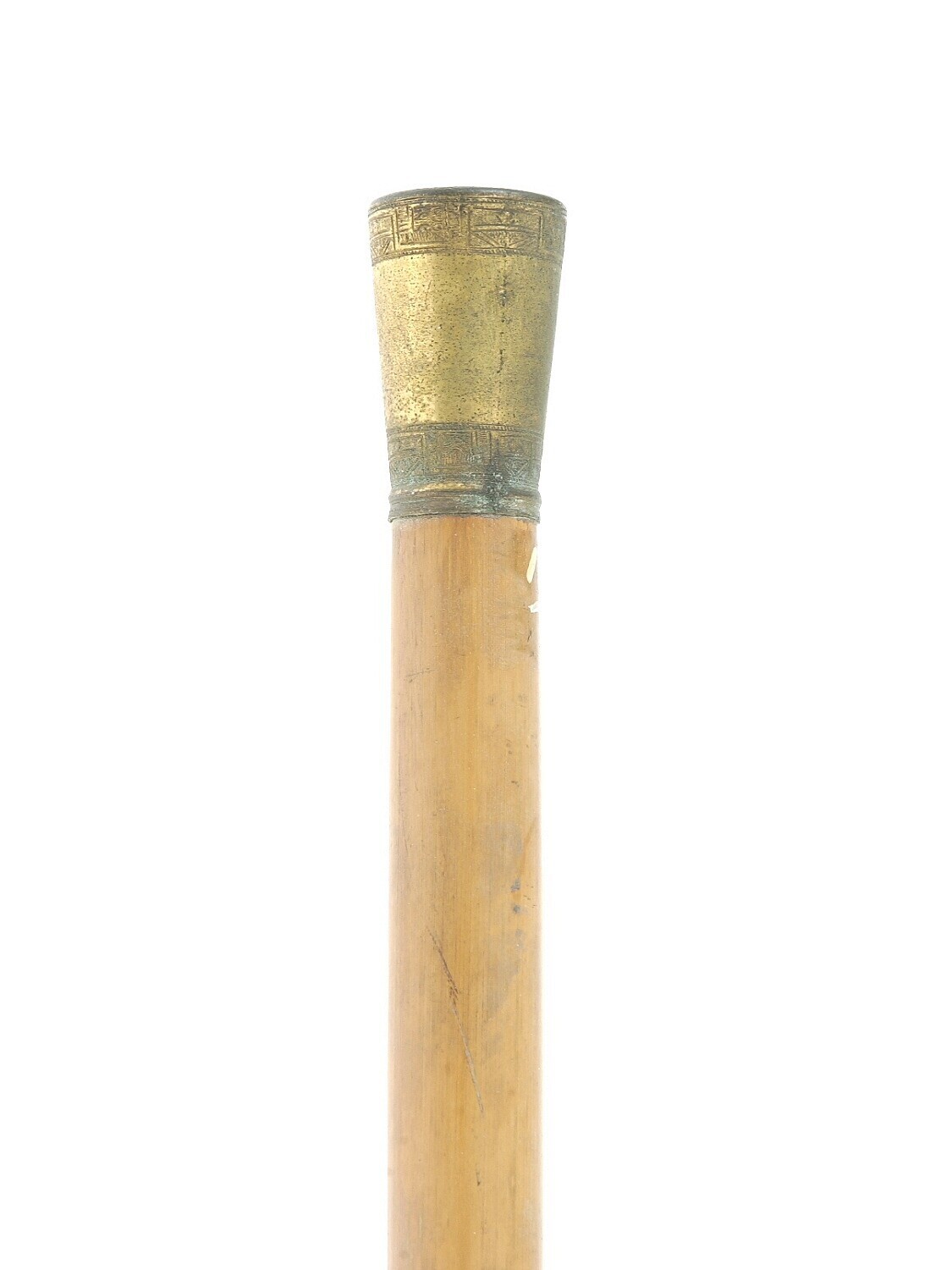 Rotan wandelstok met platte gouden knop