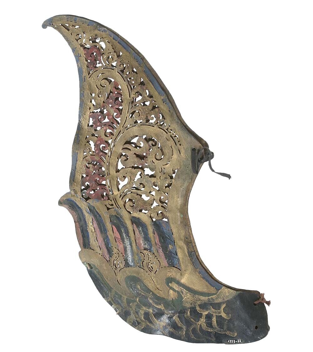 Rugsieraad van opengewerkt verguld leer, behoort tot...
