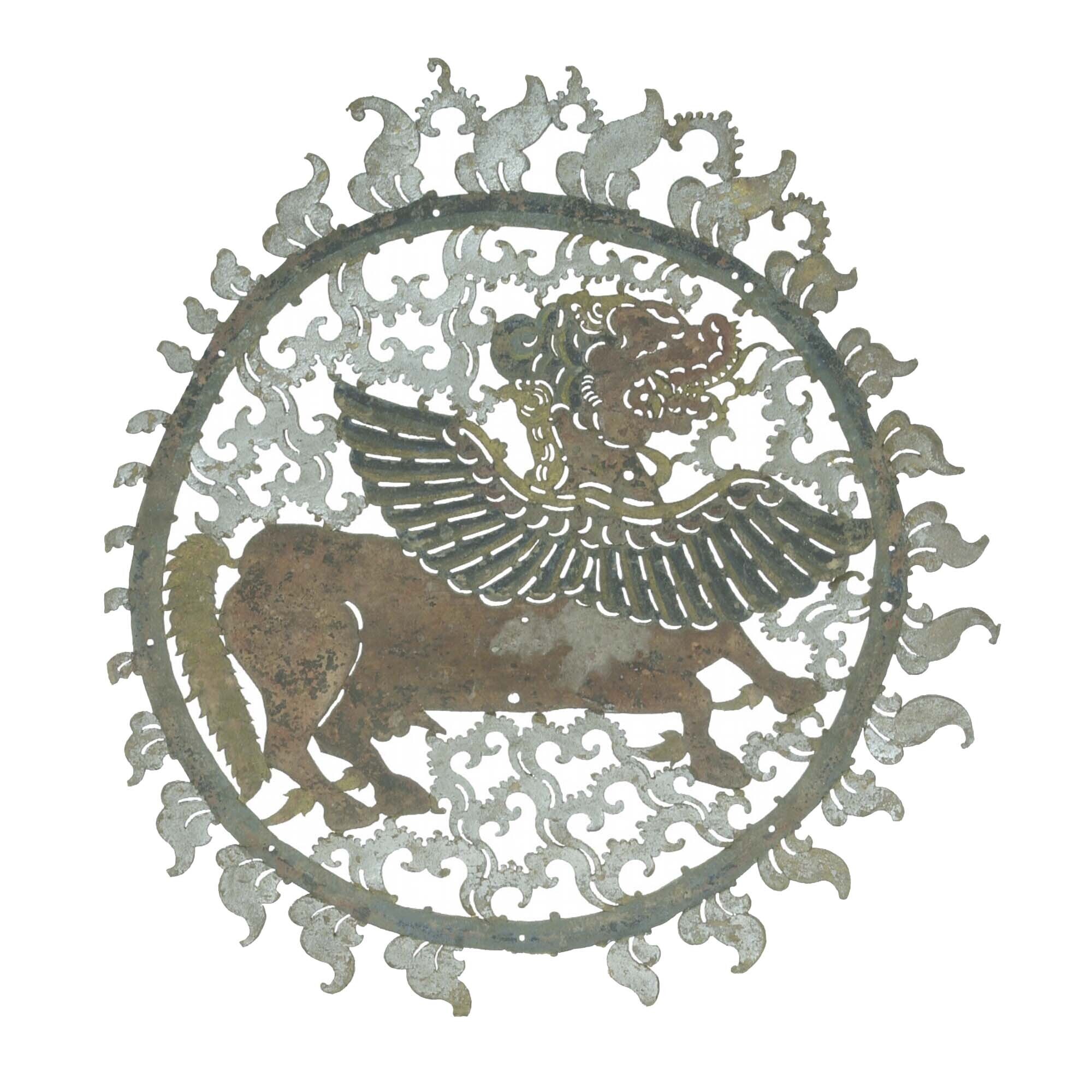 Zonneschijf van opengewerkt verzilverd leer, behoort...