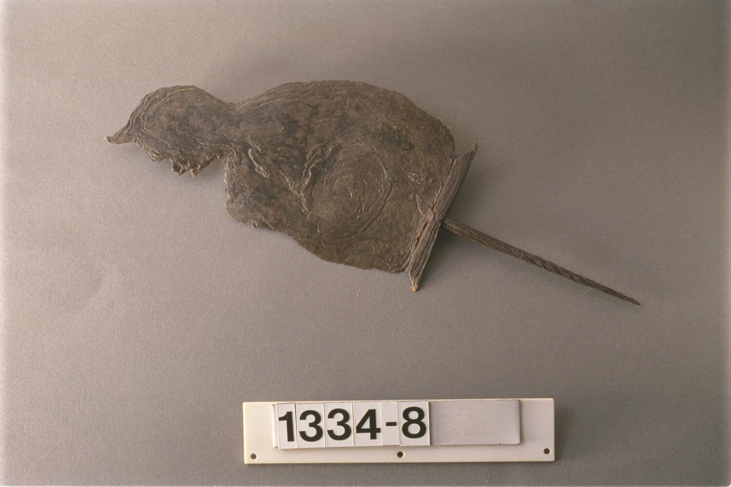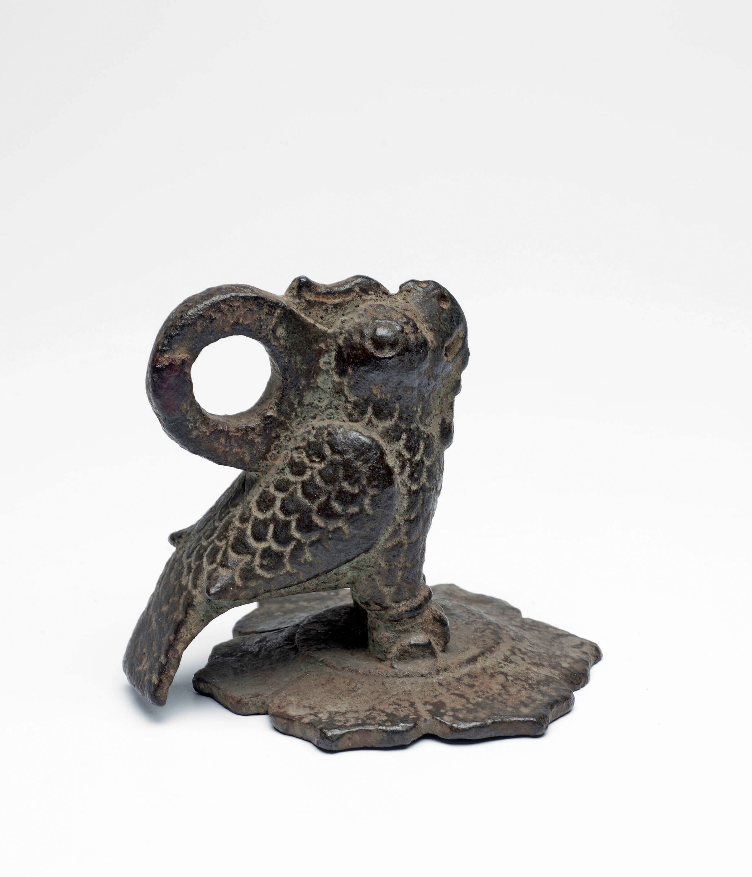 IJzeren lanspunt in de vorm van een hurkende figuur,...