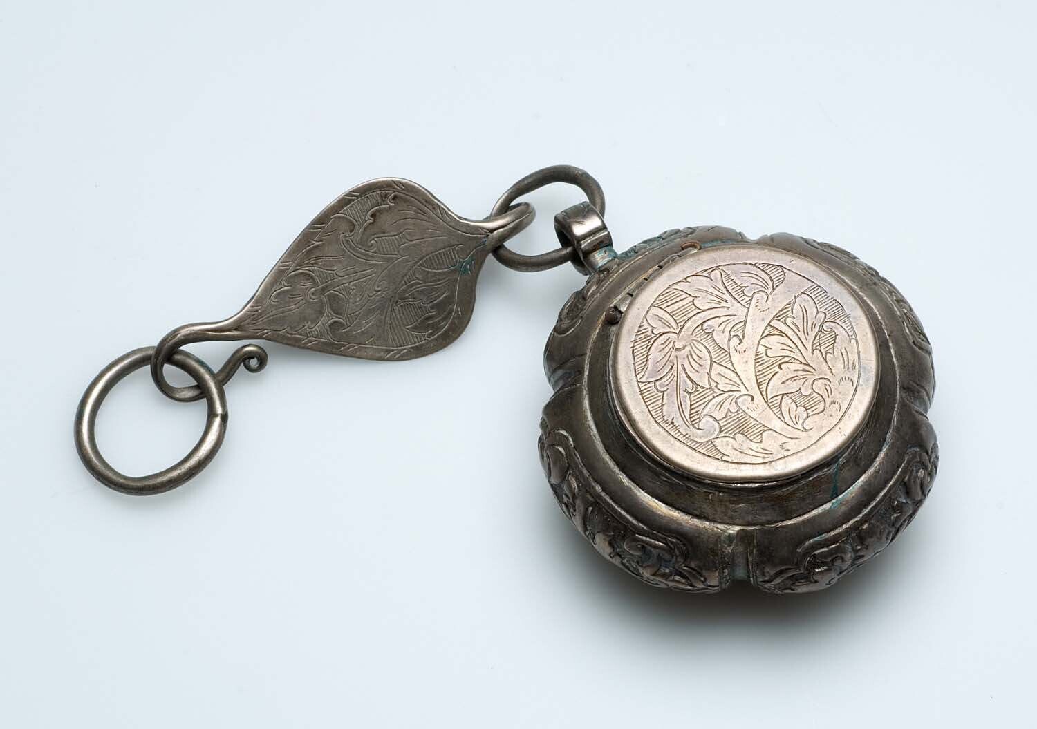 Kleine zilveren doos, als hanger gebruikt