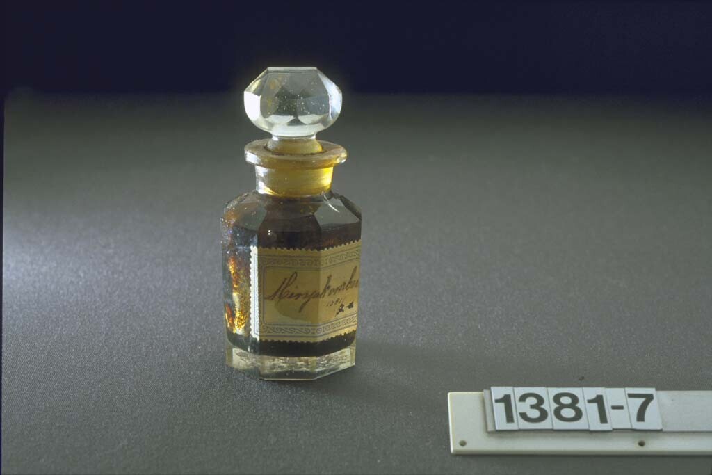 Glazen bus met een ingredient voor de amberbereiding