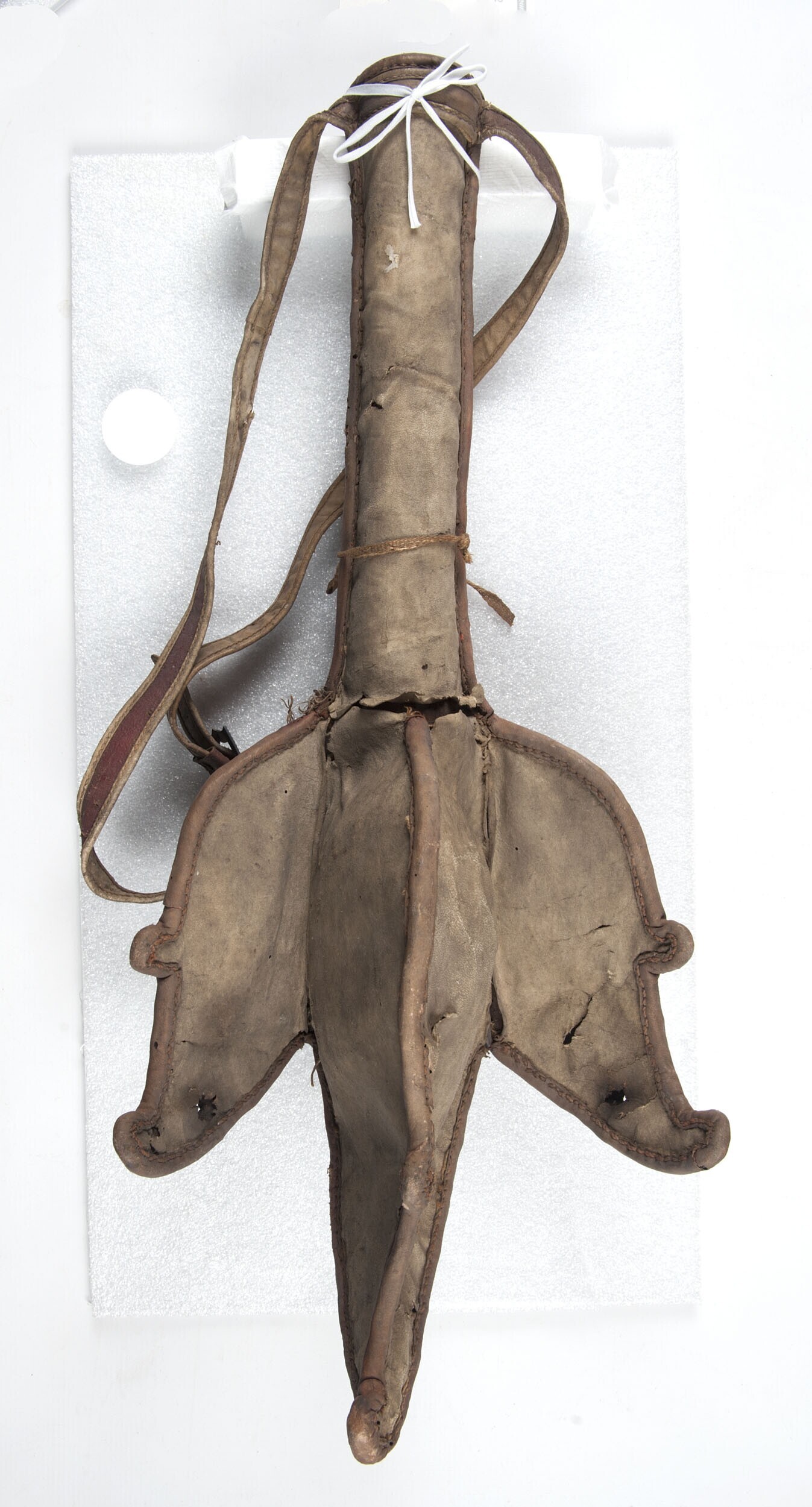 Diadeem van opengewerkt leer, behoort tot de kleding...