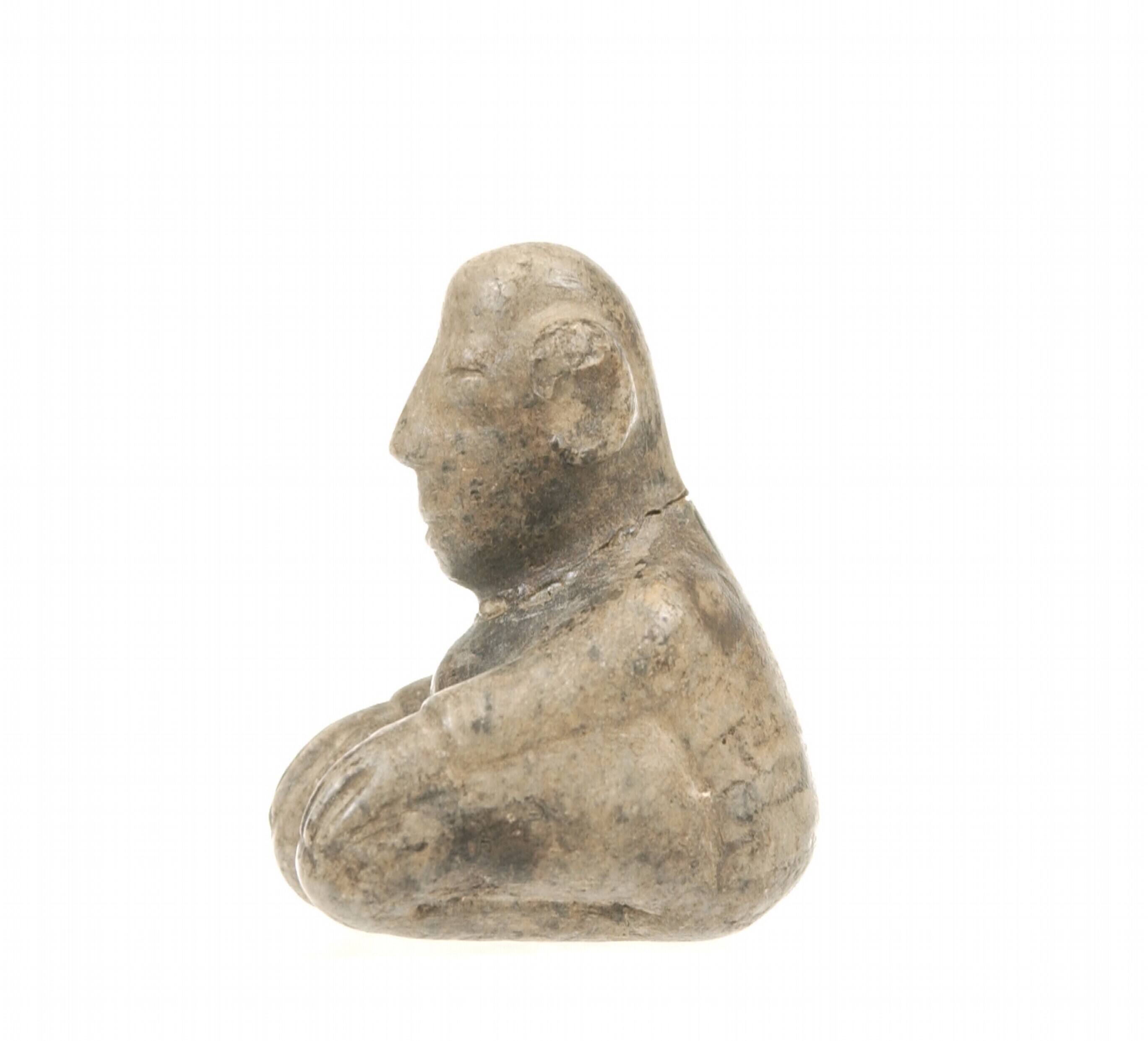 Stenen beeld van een man in zittende houding
