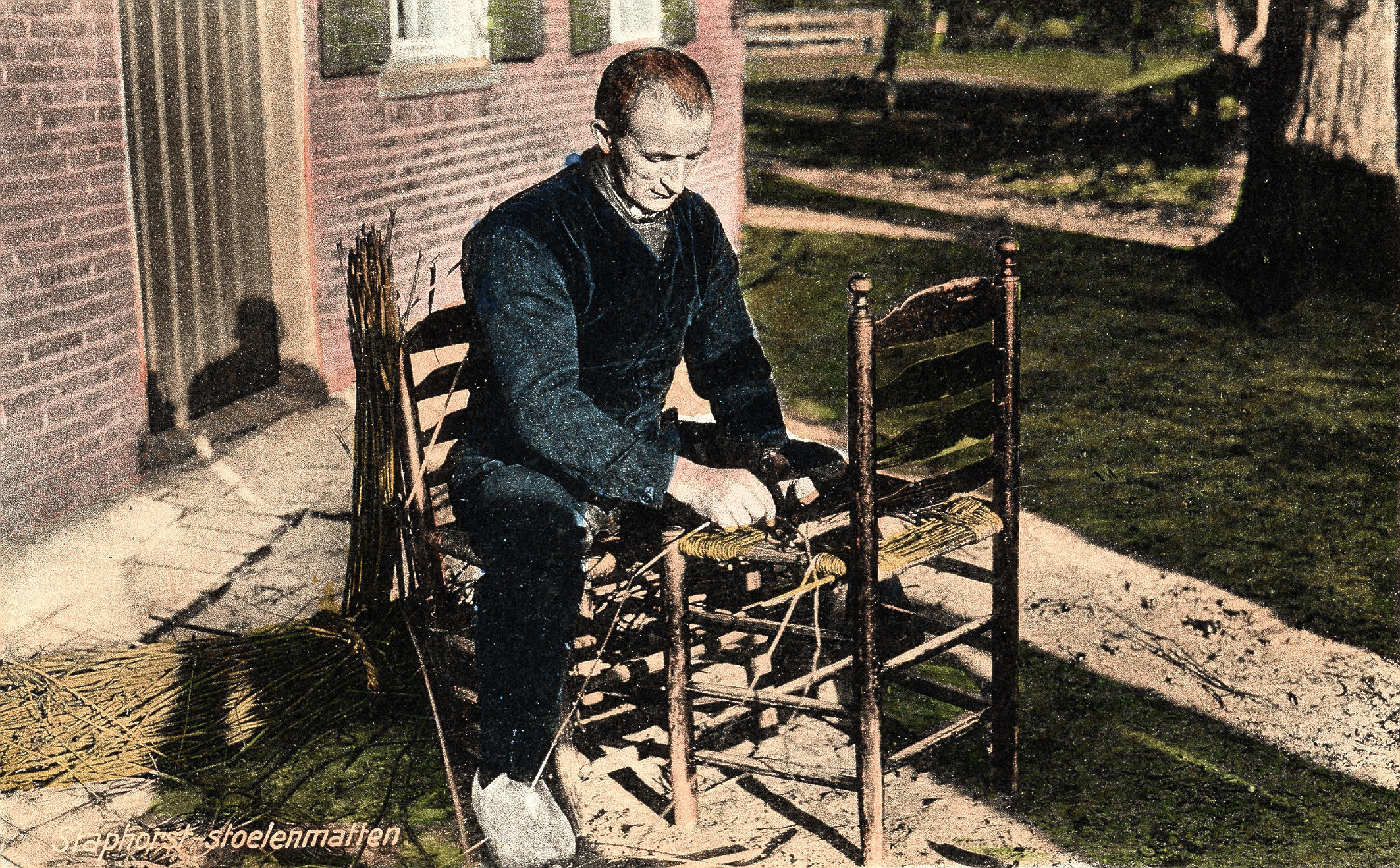 Jan Hoeve aan het stoelenmatten, Staphorst, 1910–193...