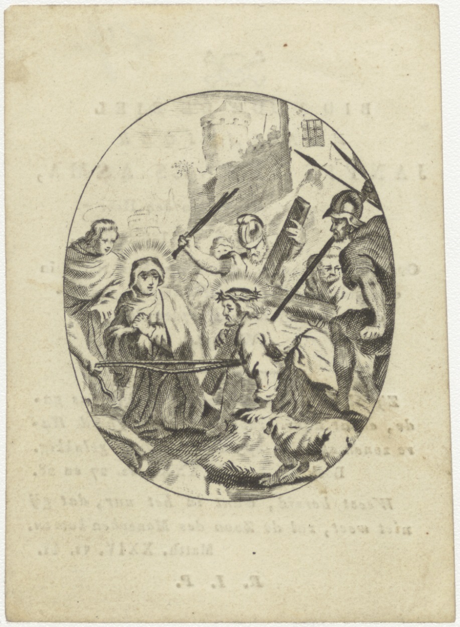 De doornenkroning en geseling, kz. Bid voor ziel Van...
