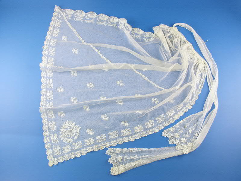 Marseilles, geborduurde vrouwenmuts met lange voorst...