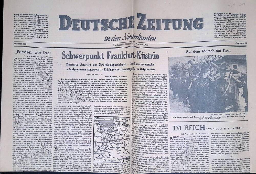 Deutsche Zeitung in den Niederlanden. 7 februari 1945.