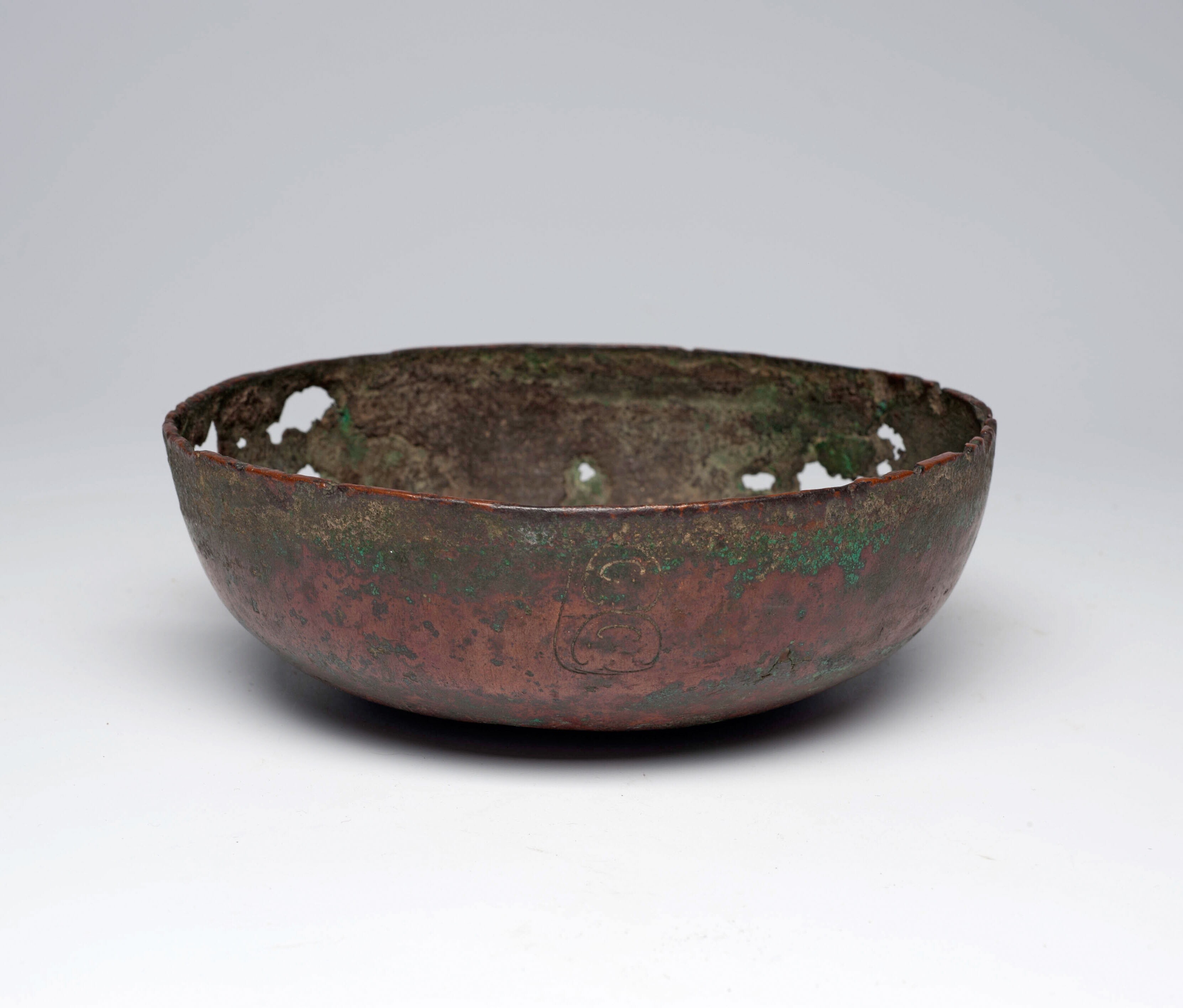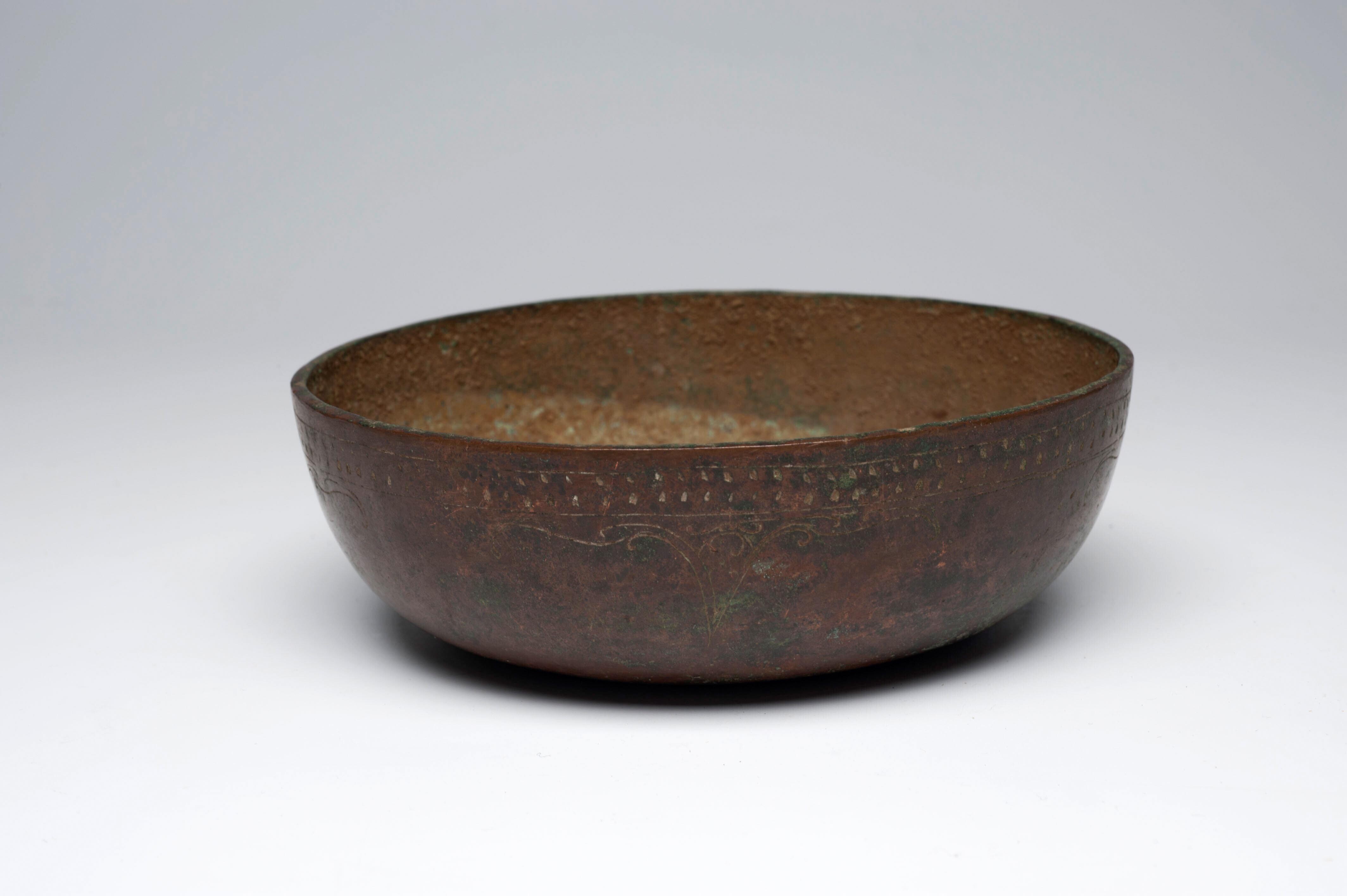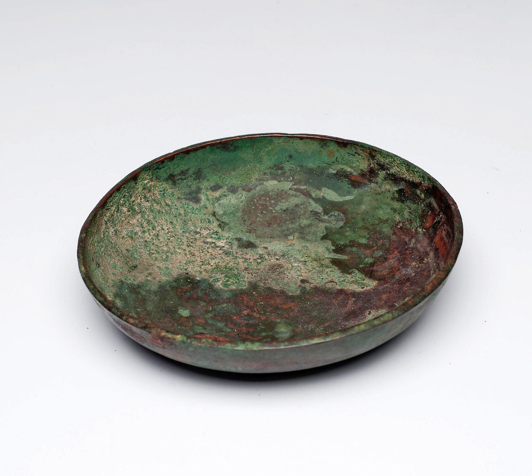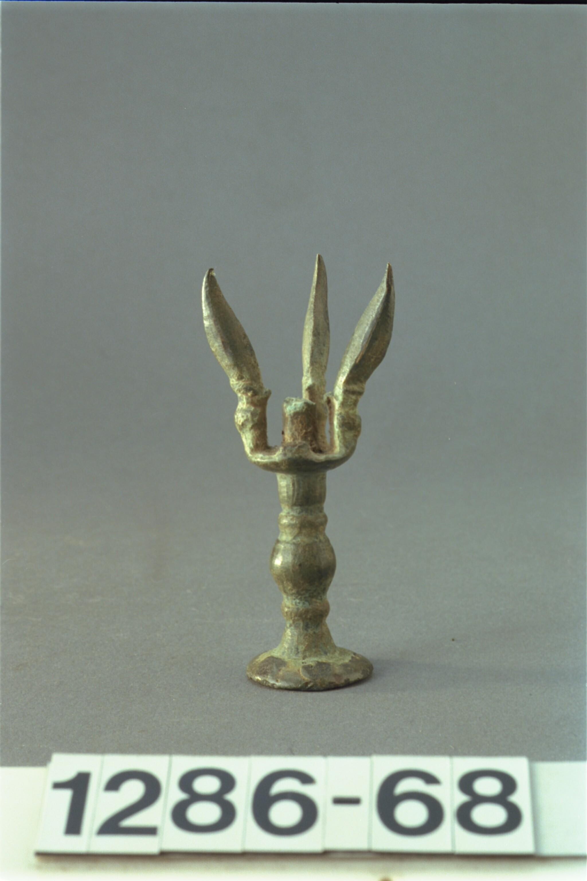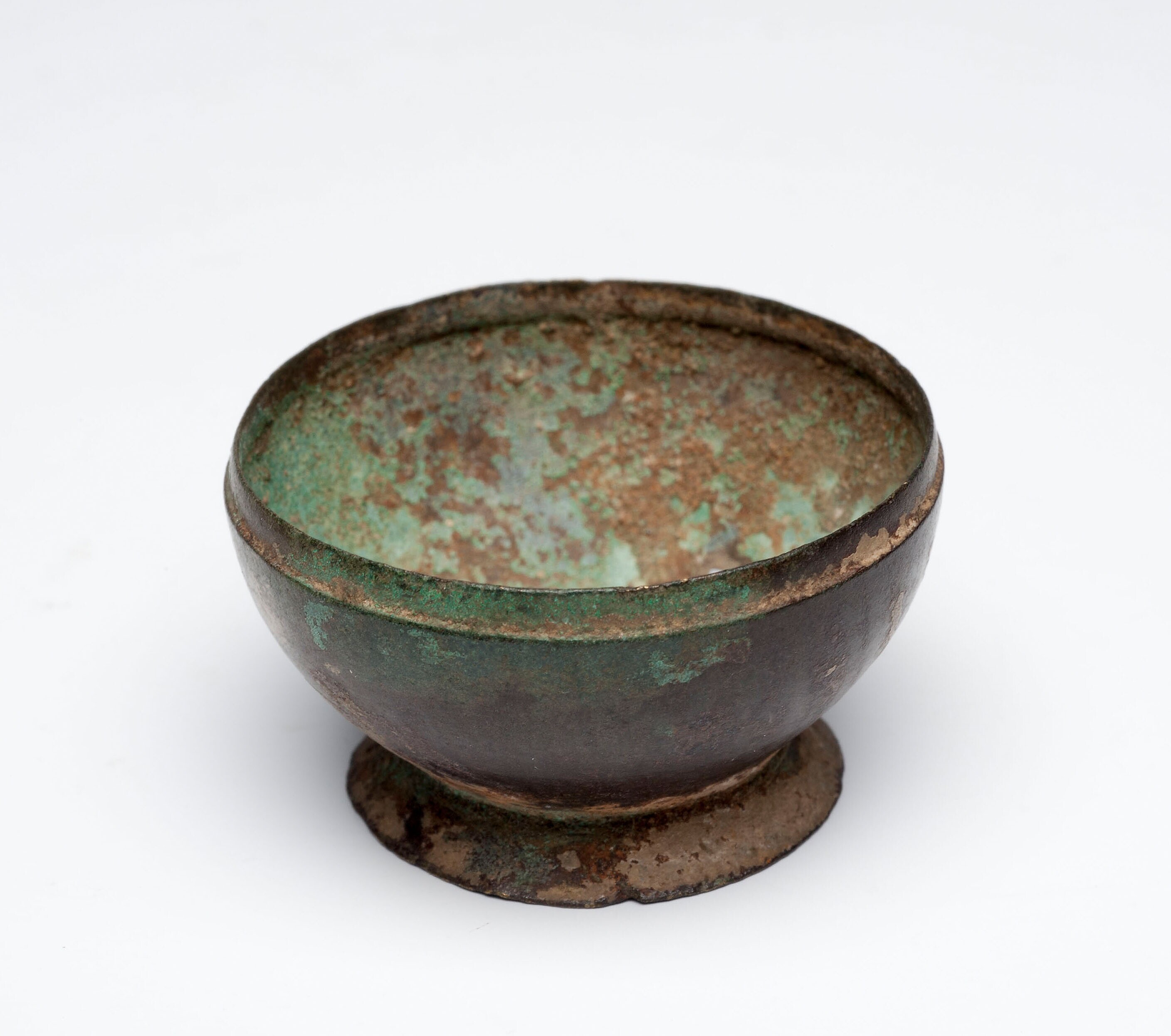 Bronzen pot op een voetstuk, de deksel ontbreekt