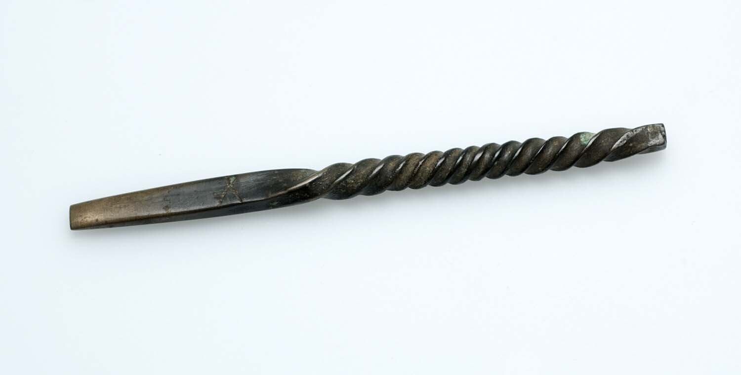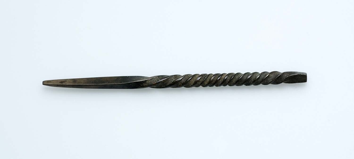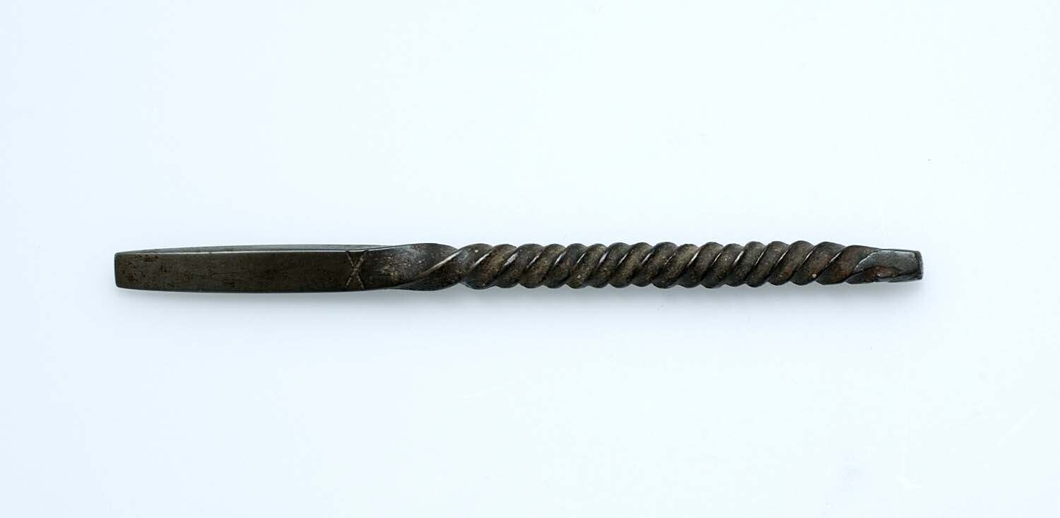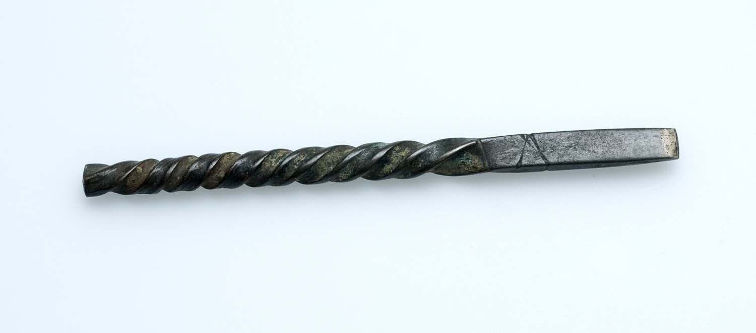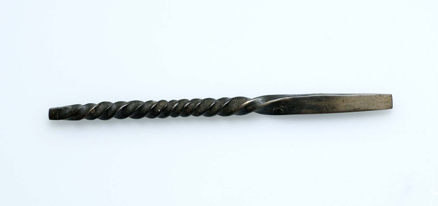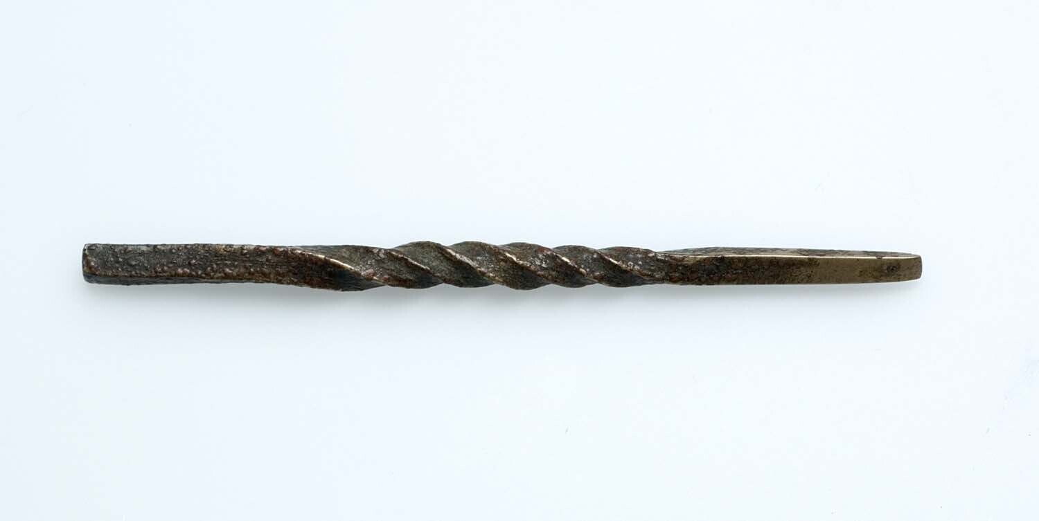 Sieraadfragment in de vorm van een tinnen strip met ...