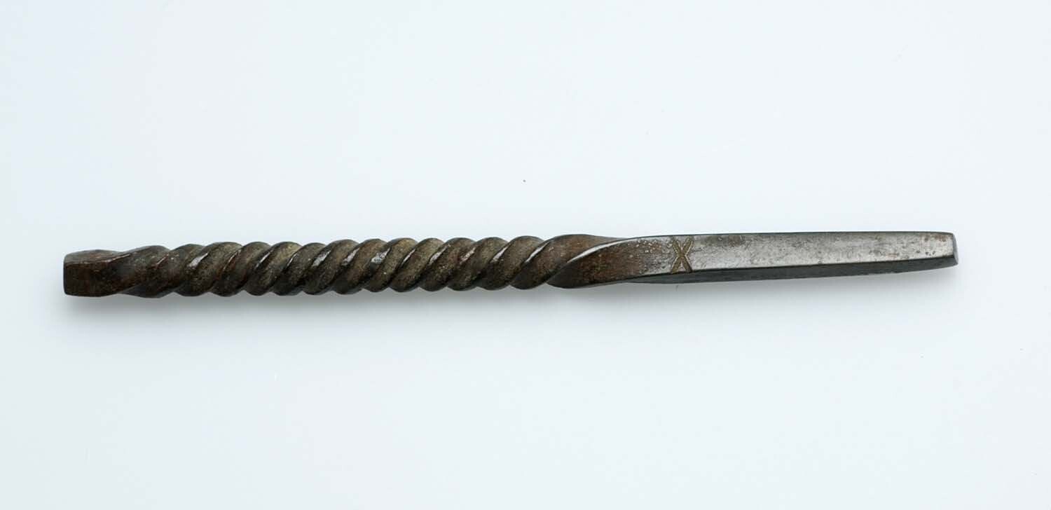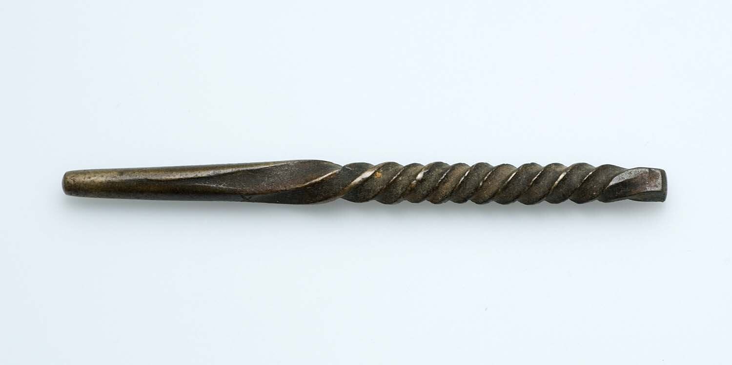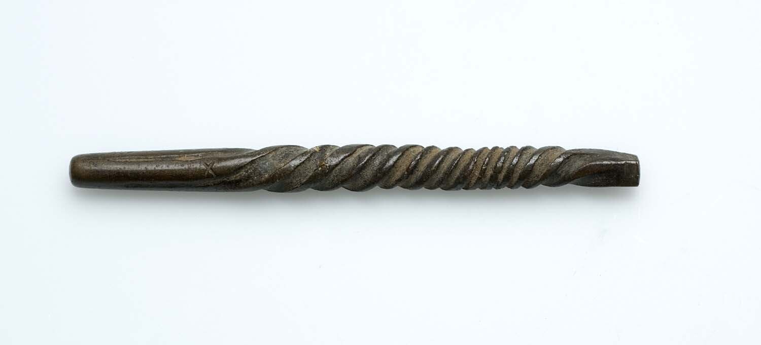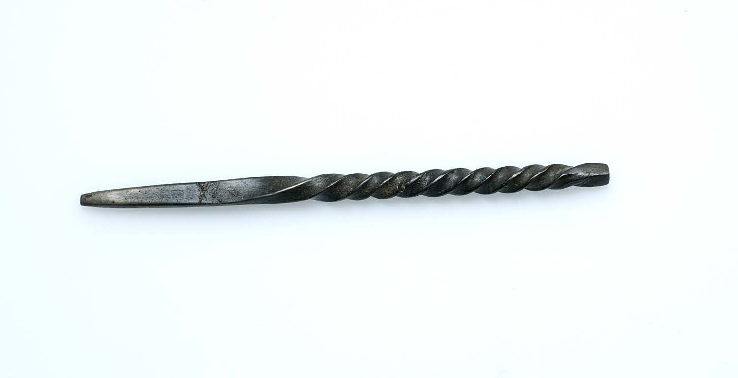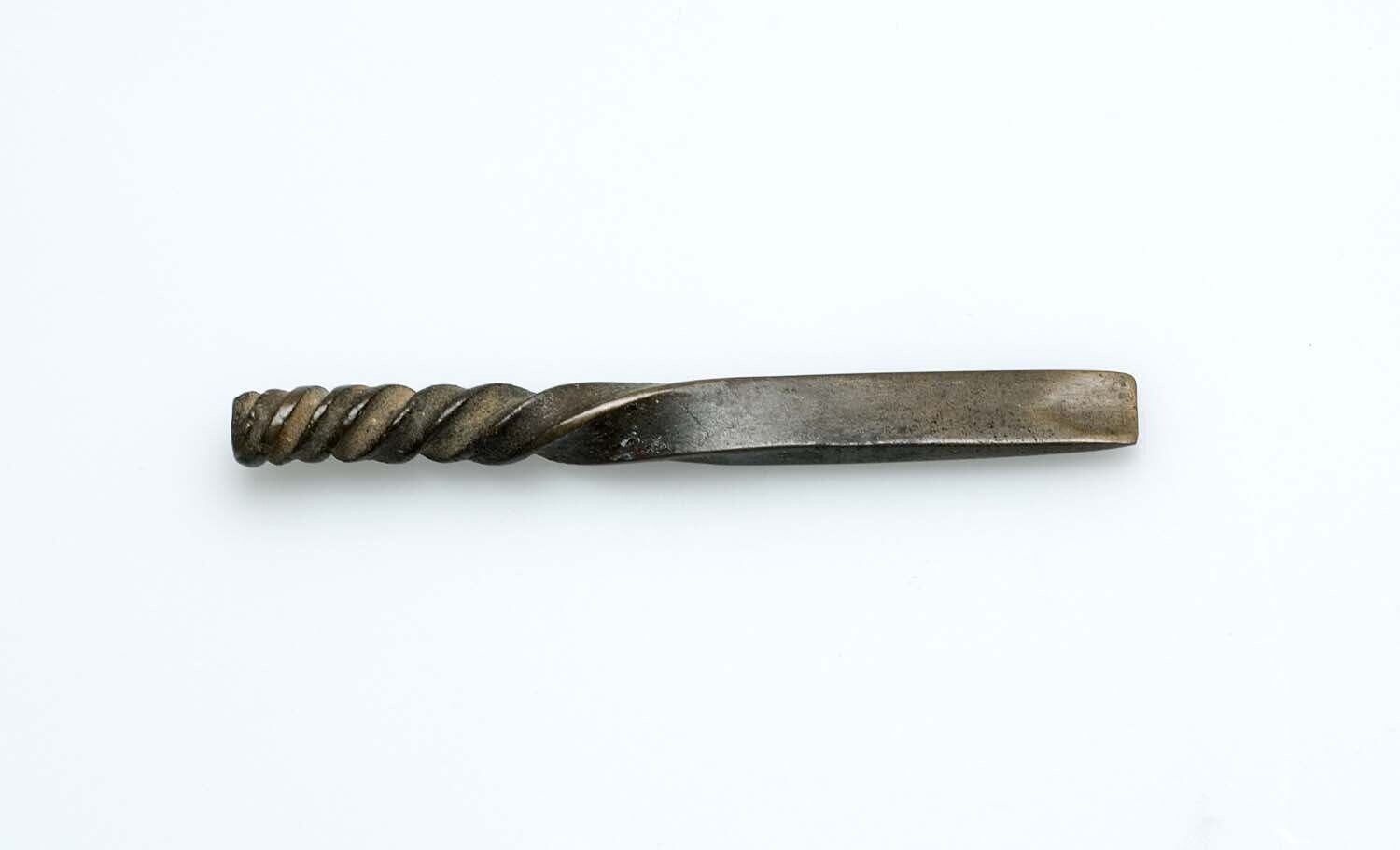Sieraadfragment in de vorm van een tinnen strip met ...