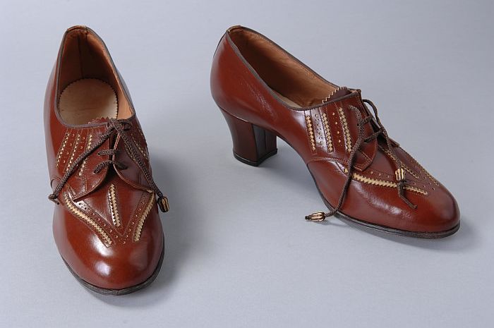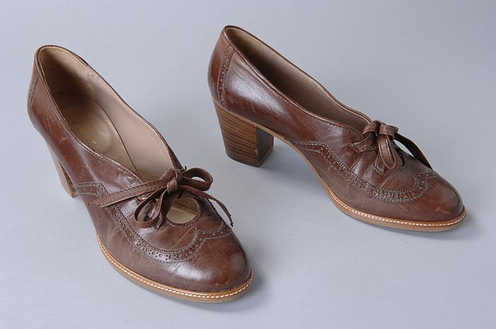 Bruine leren veterschoen, op neus en hiel een rand m...