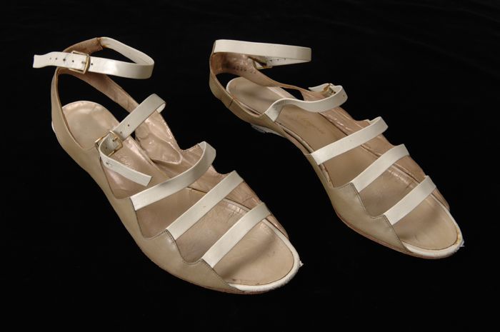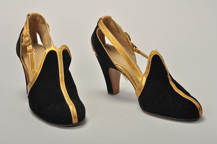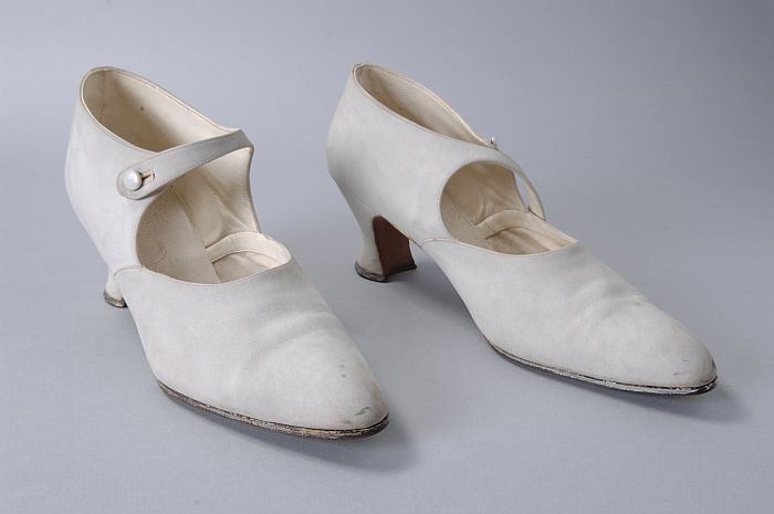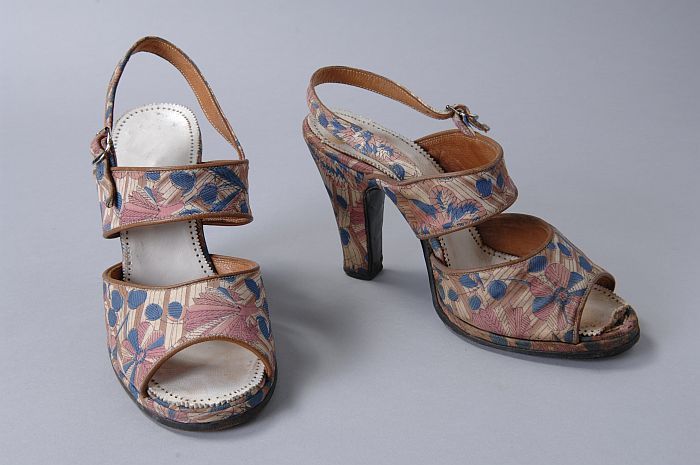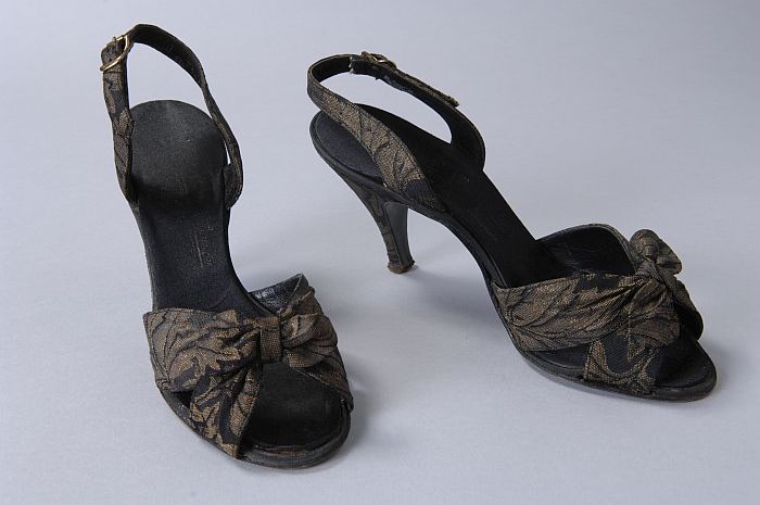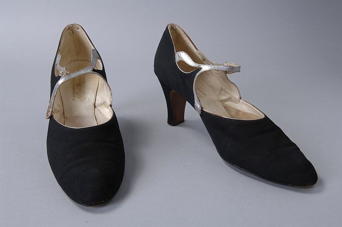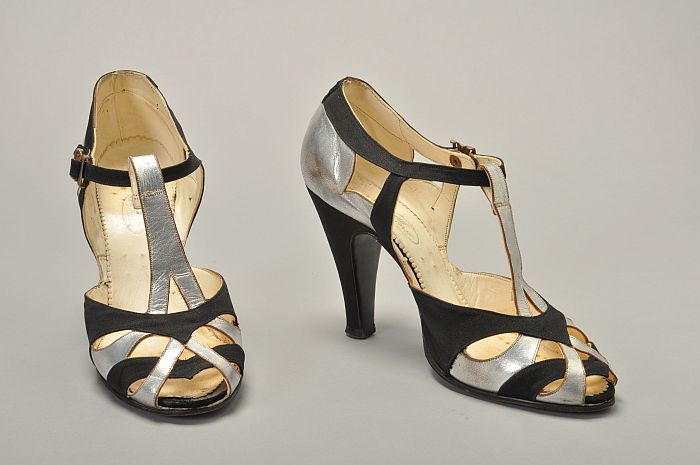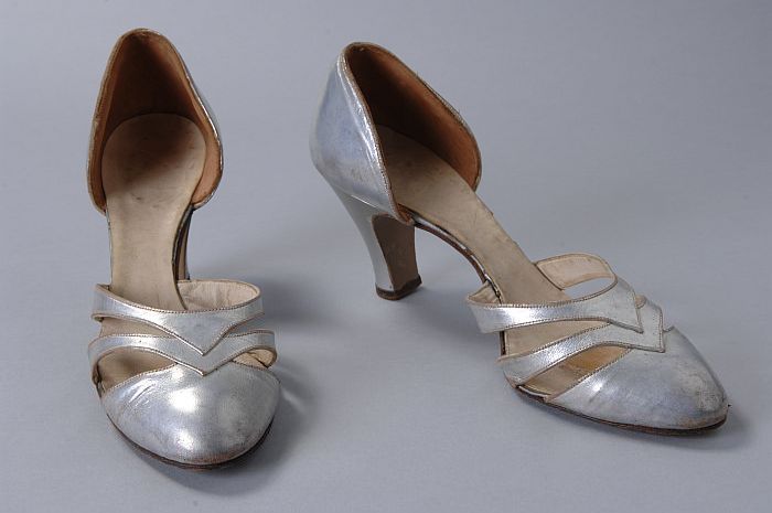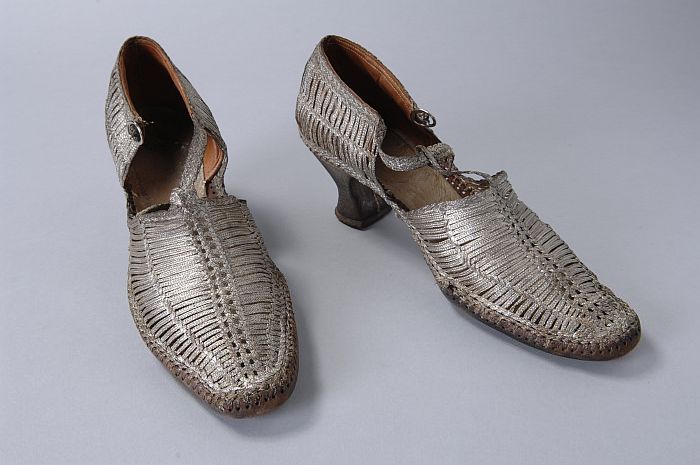Hakschoenen van gevlochten zilverbrokaatband met T-b...