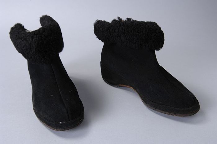 Zwarte suède dames enkellaarzen met een bontrand lan...