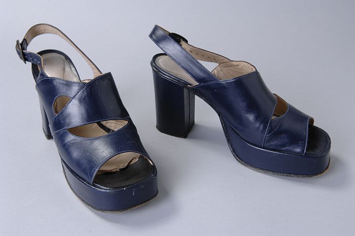 Donkerblauwe leren sandalettes met dikke plateauzool...