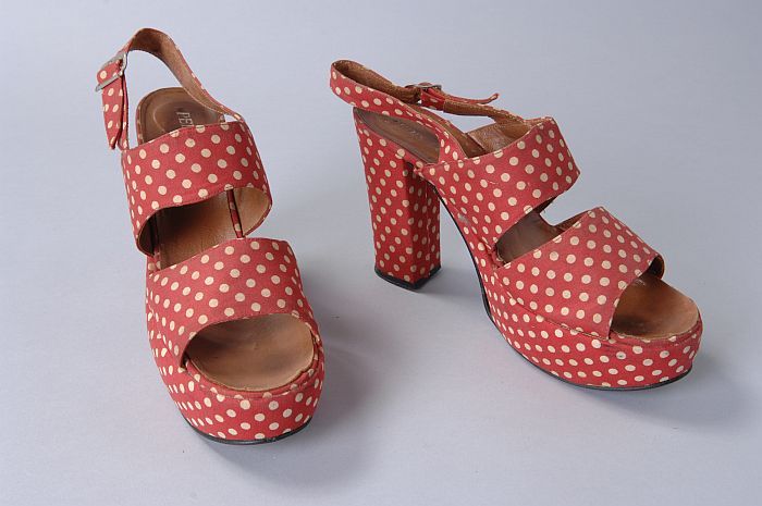 Rood met wit gestipte katoenen sandalettes met dikke...