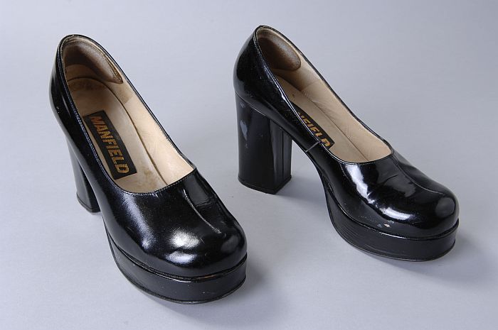 Zwarte lakleren pumps met dikke plateauzool en zeer ...