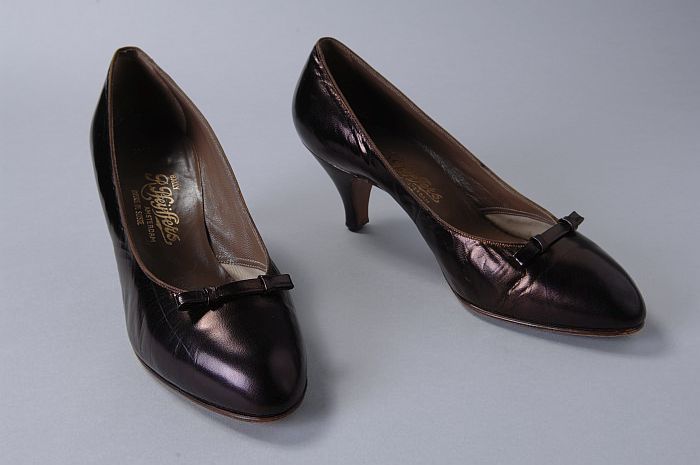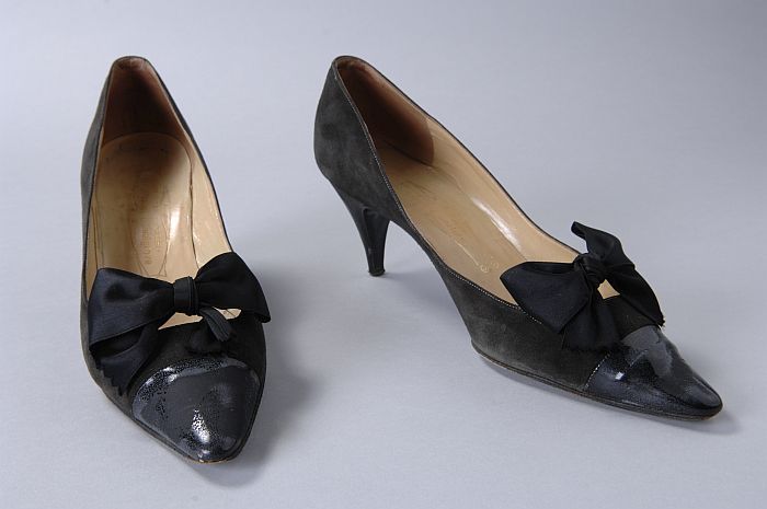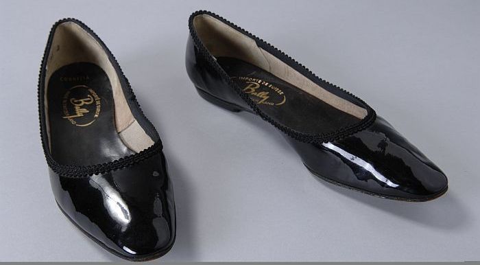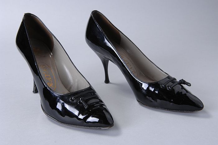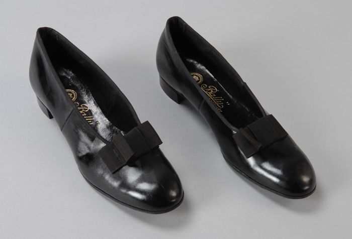 Zwarte leren damesschoenen met strik van zwart lint ...