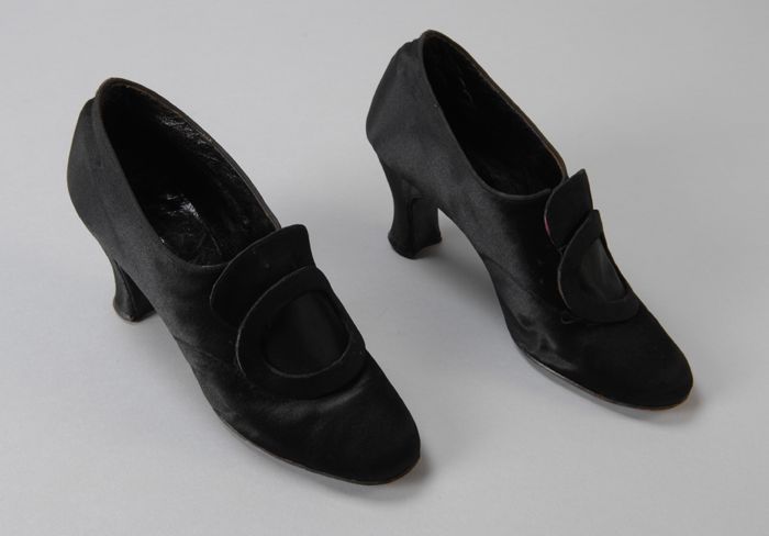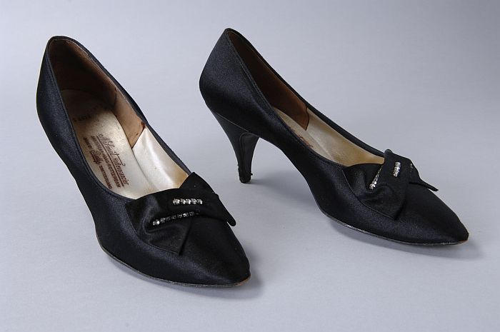 Zwart satijnen hakschoenen met decoratieve naad op d...