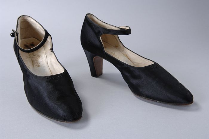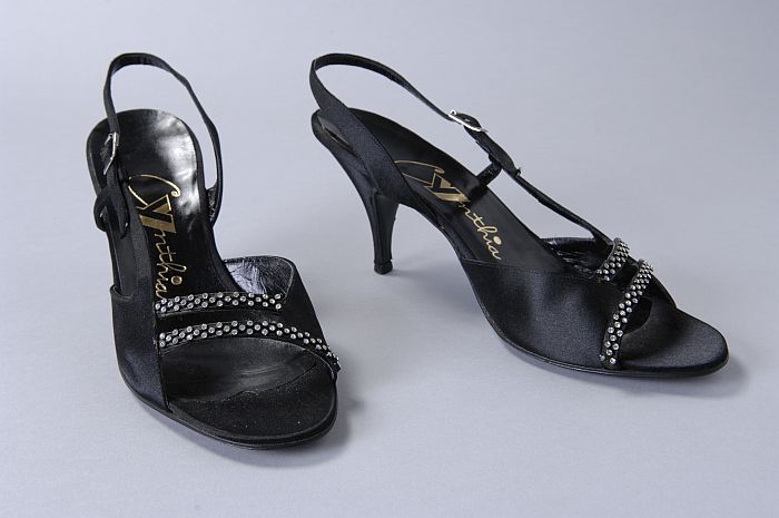 Zwarte satijnen hakschoenen met bandje om de enkel m...