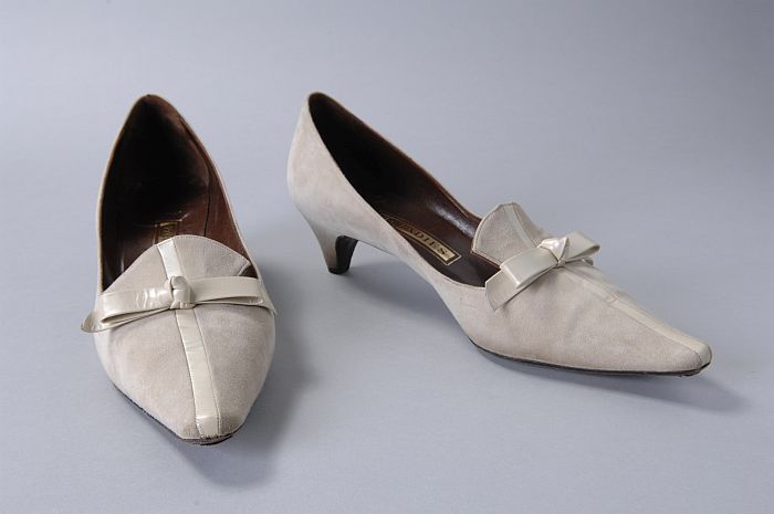 Lichtgrijze hakschoenen met wreefbandje met knoopslu...