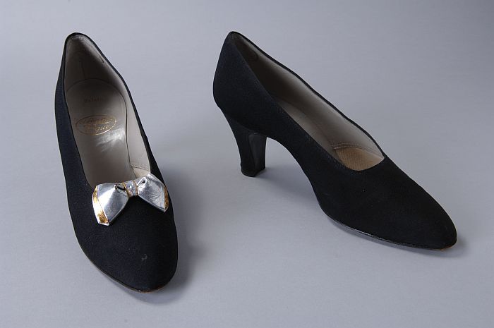 Zwarte leren hakschoenen met strik van zwart lint op...