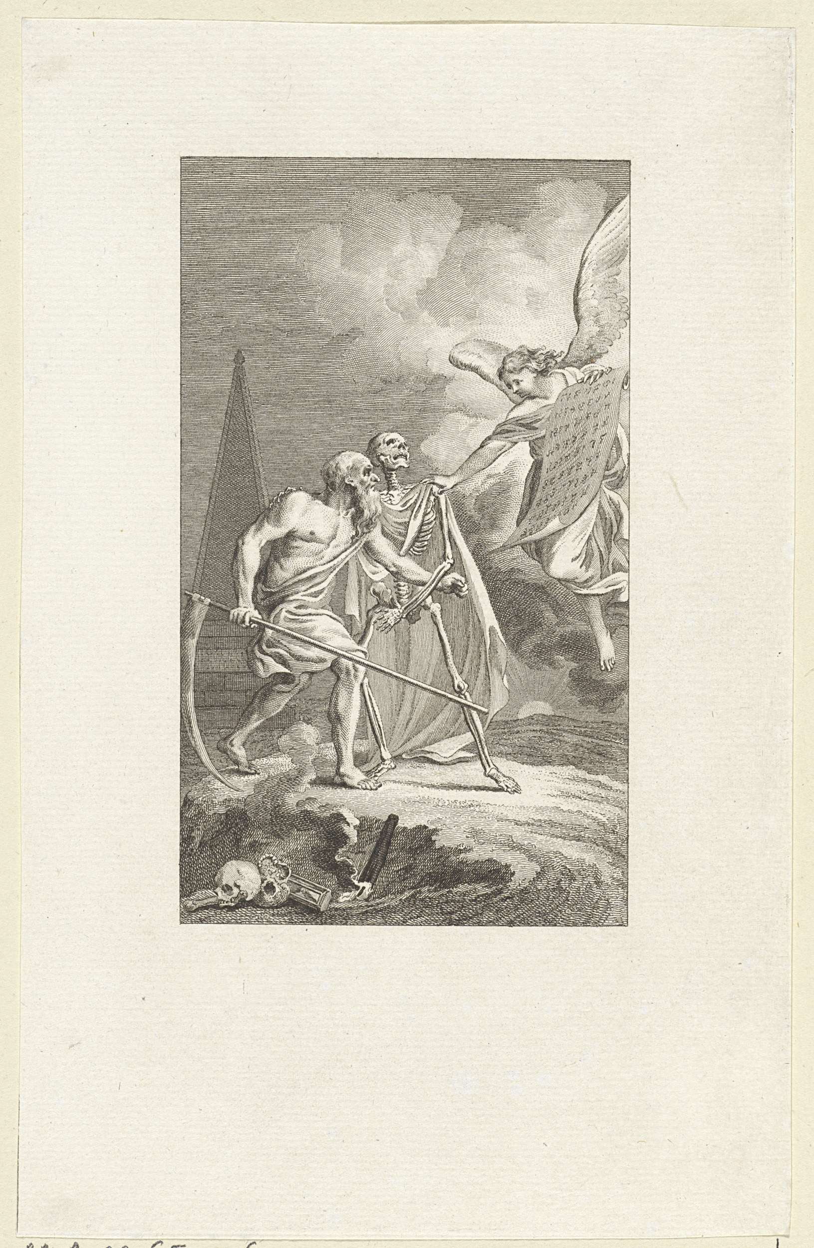 Allegorie met Vader Tijd, de Dood en een engel