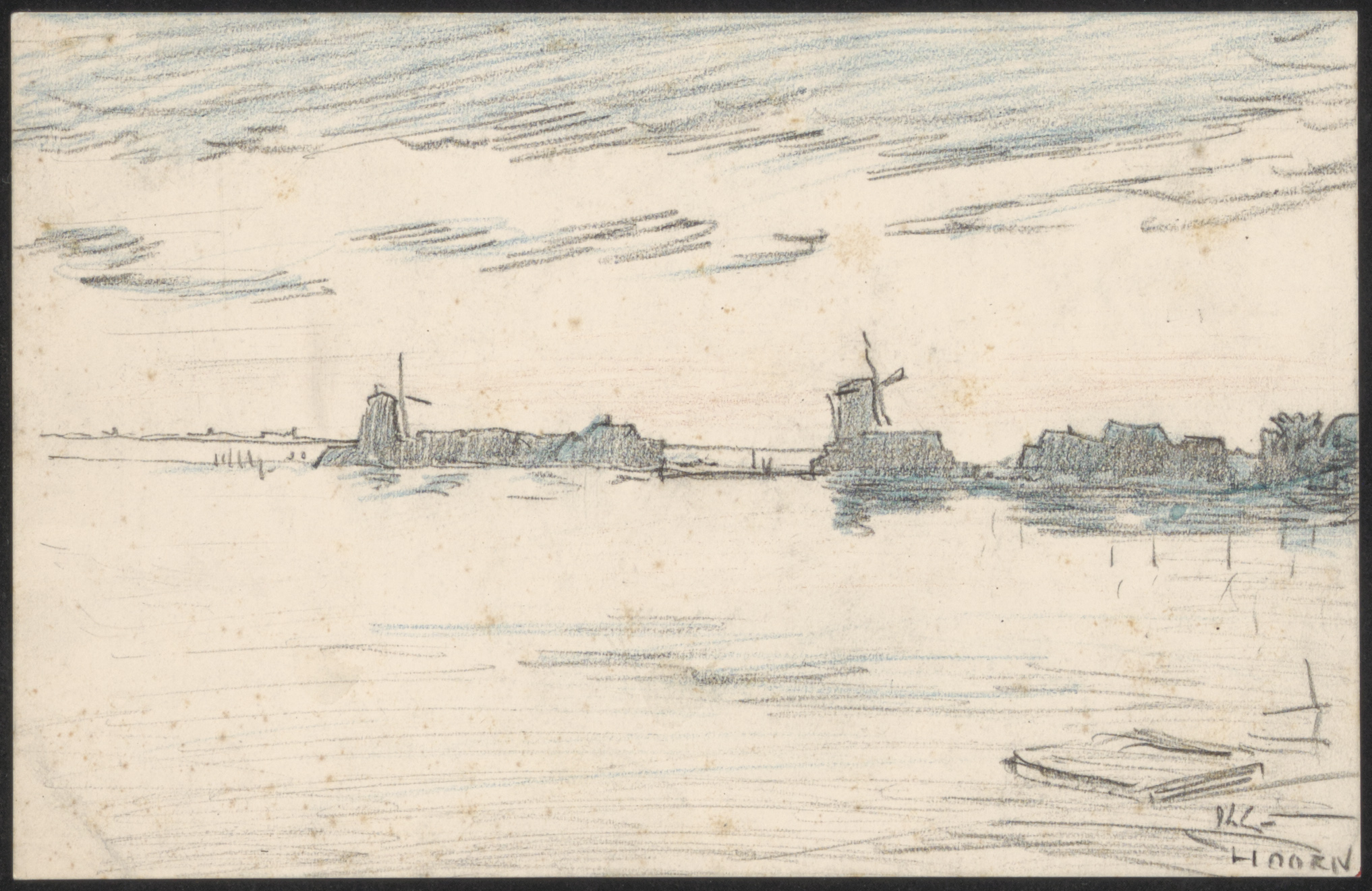 Afsluitdijk bij den paard[enhoek] gezien van de buit...