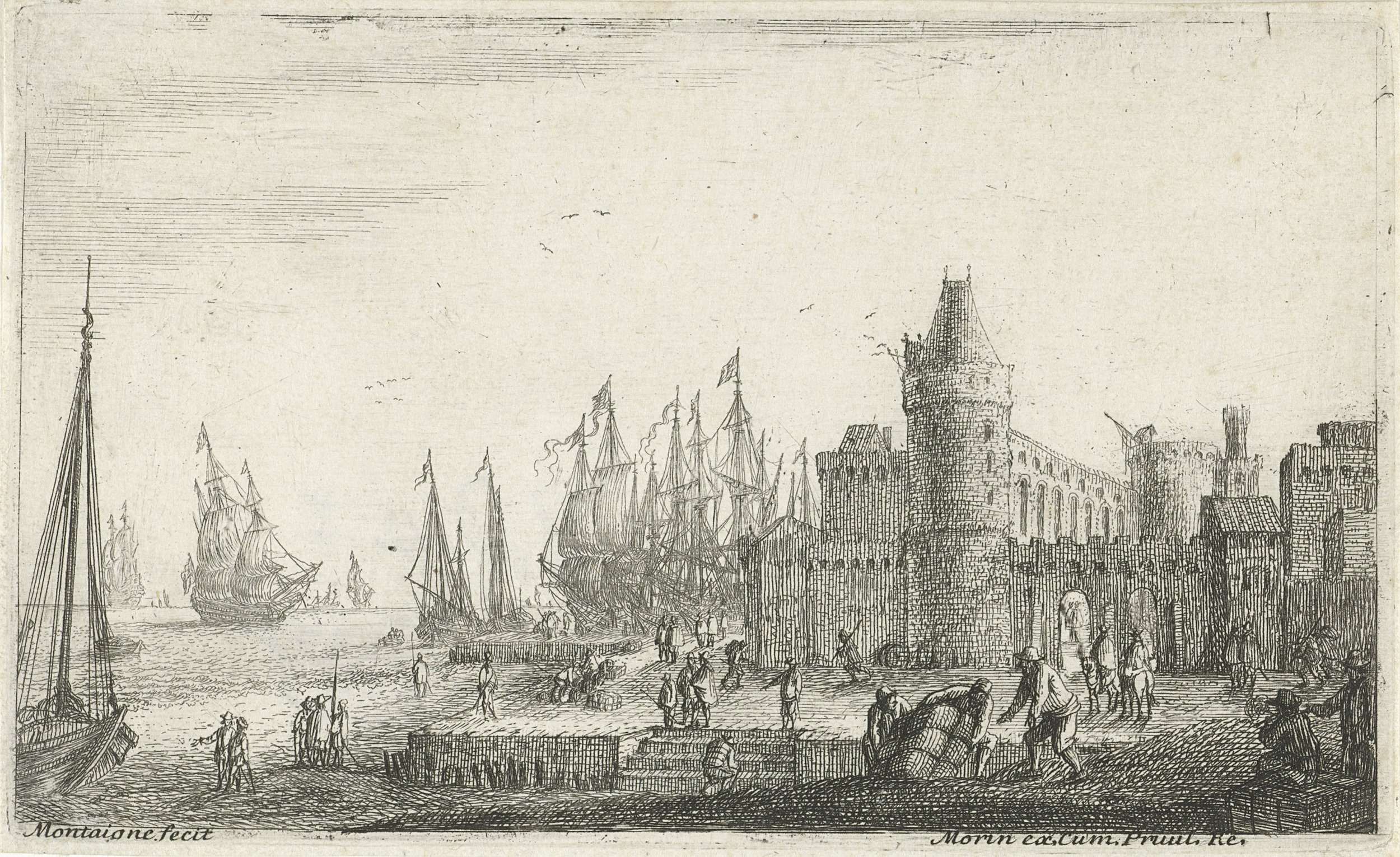 Gezicht op haven met vesting