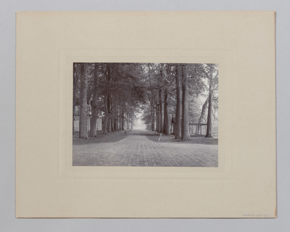 Foto van een oprijlaan bij een kasteel of buitenplaats