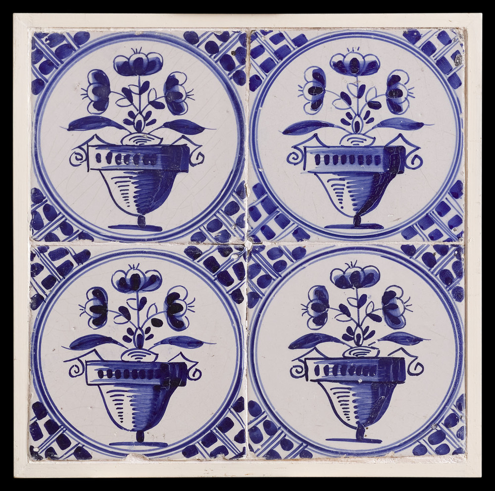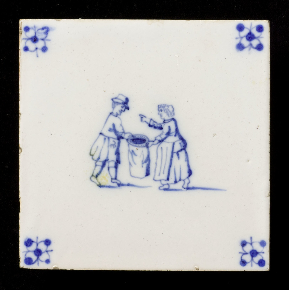 tegel van aardewerk met tinglazuur, voorstellende: v...