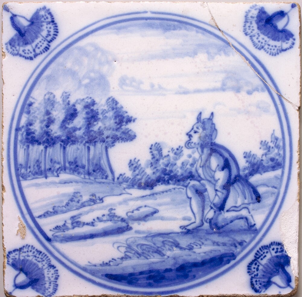 Tegel van keramiek met tinglazuur, voorstellende: he...