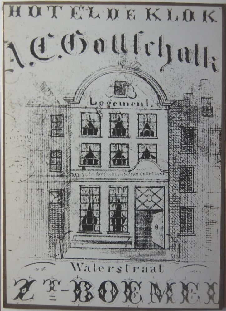 affiche van Hotel De Klok te Zaltbommel periode 1800...