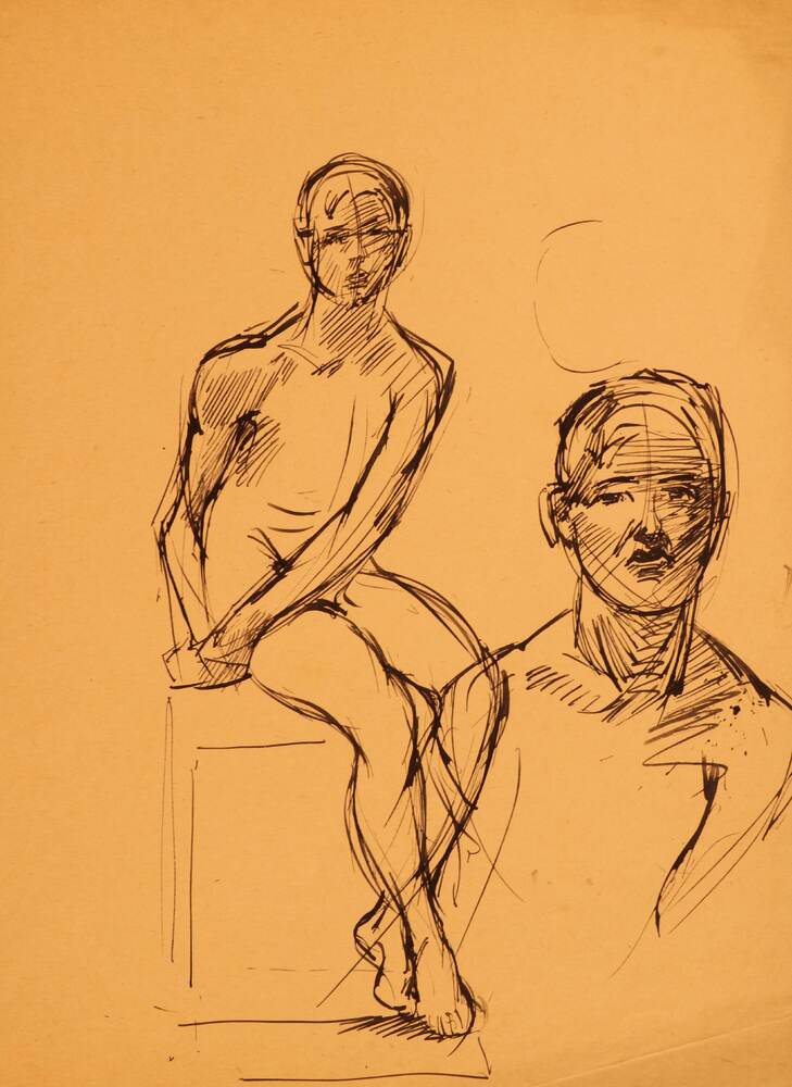 Zittend mannelijk naakt en mannenkop