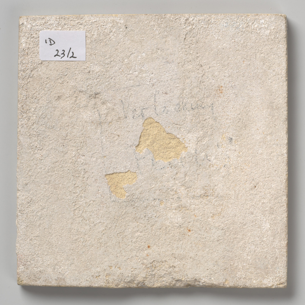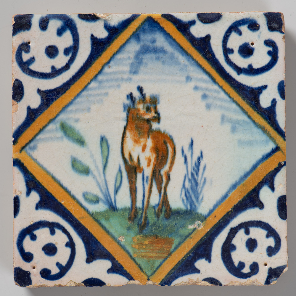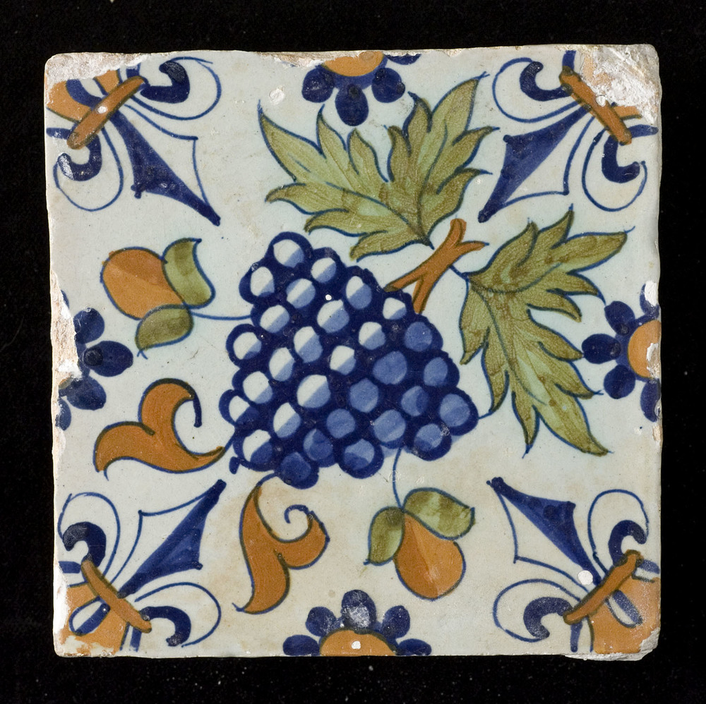Tegel van keramiek met tinglazuur, voorstellende: or...
