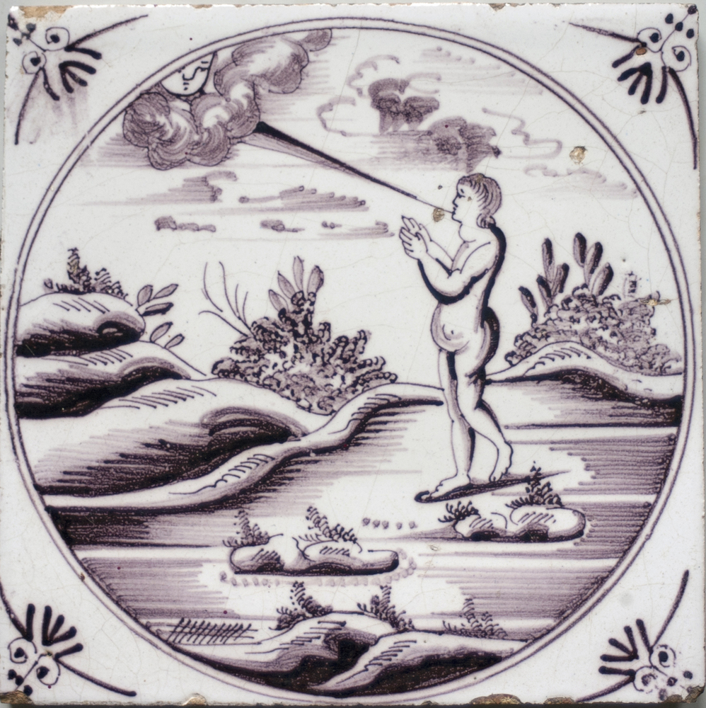 tegel van aardewerk met tinglazuur, voorstellende: P...