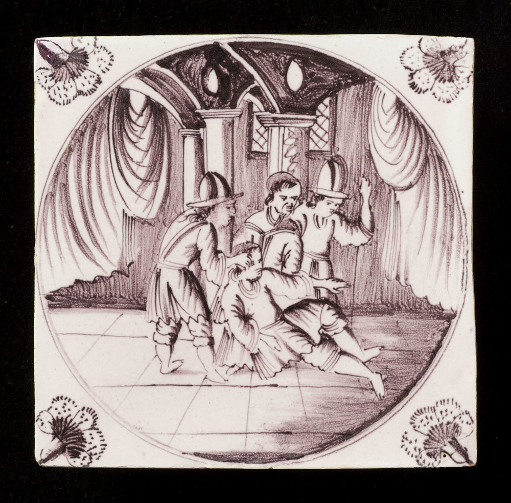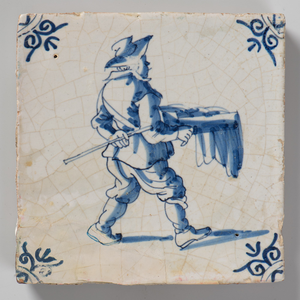 tegel van aardewerk met tinglazuur, voorstellende: m...